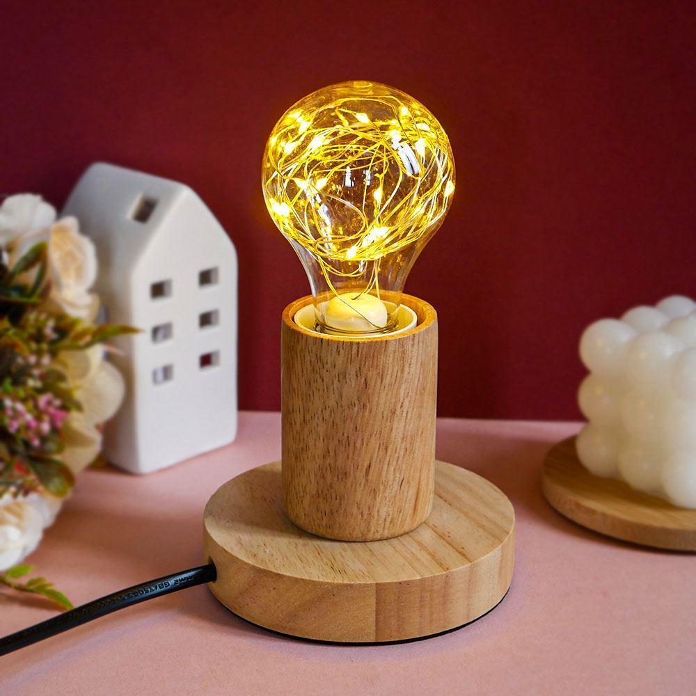 Lampa de masa din lemn cu bec - lumina calda