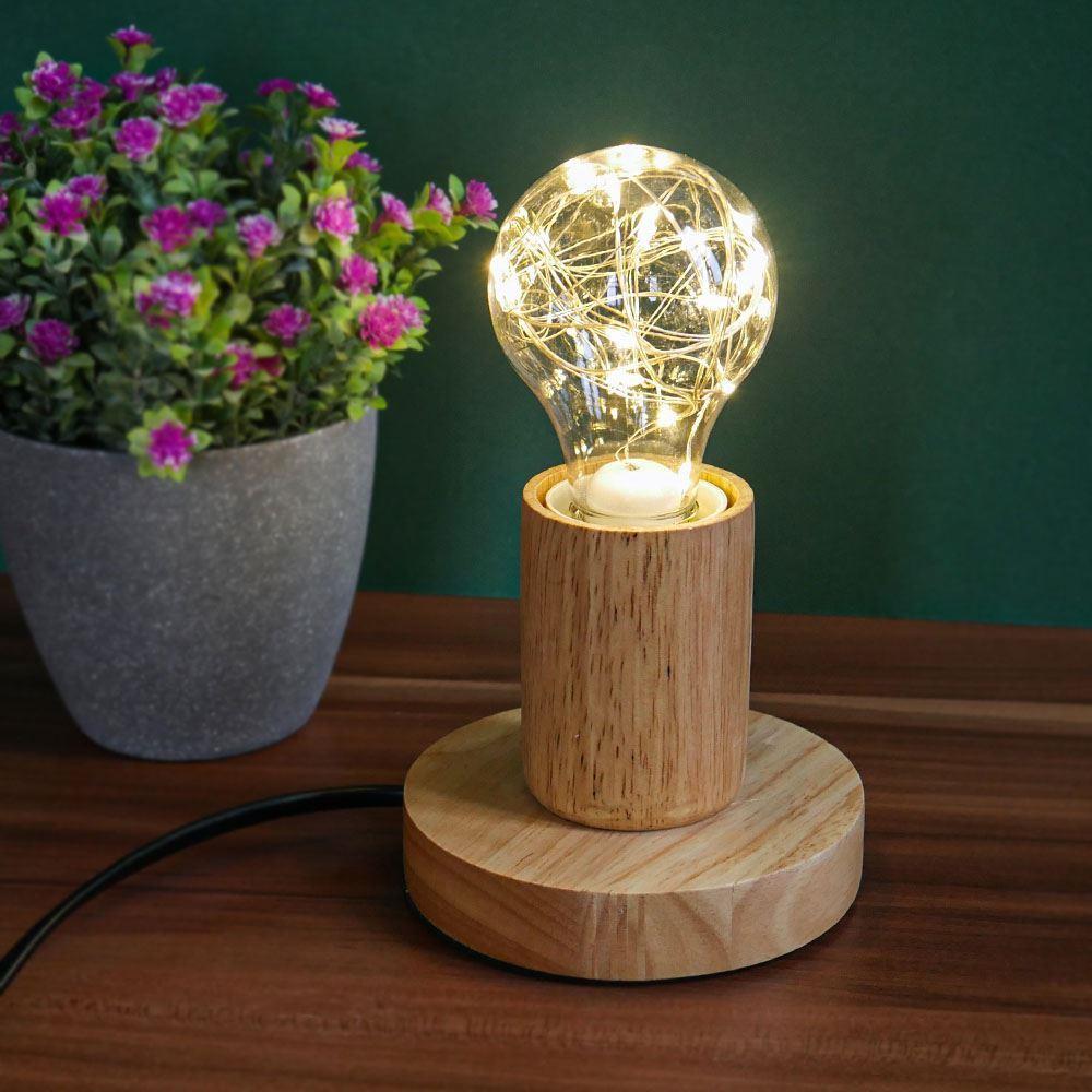 Lampa de masa din lemn cu bec - lumina neutra