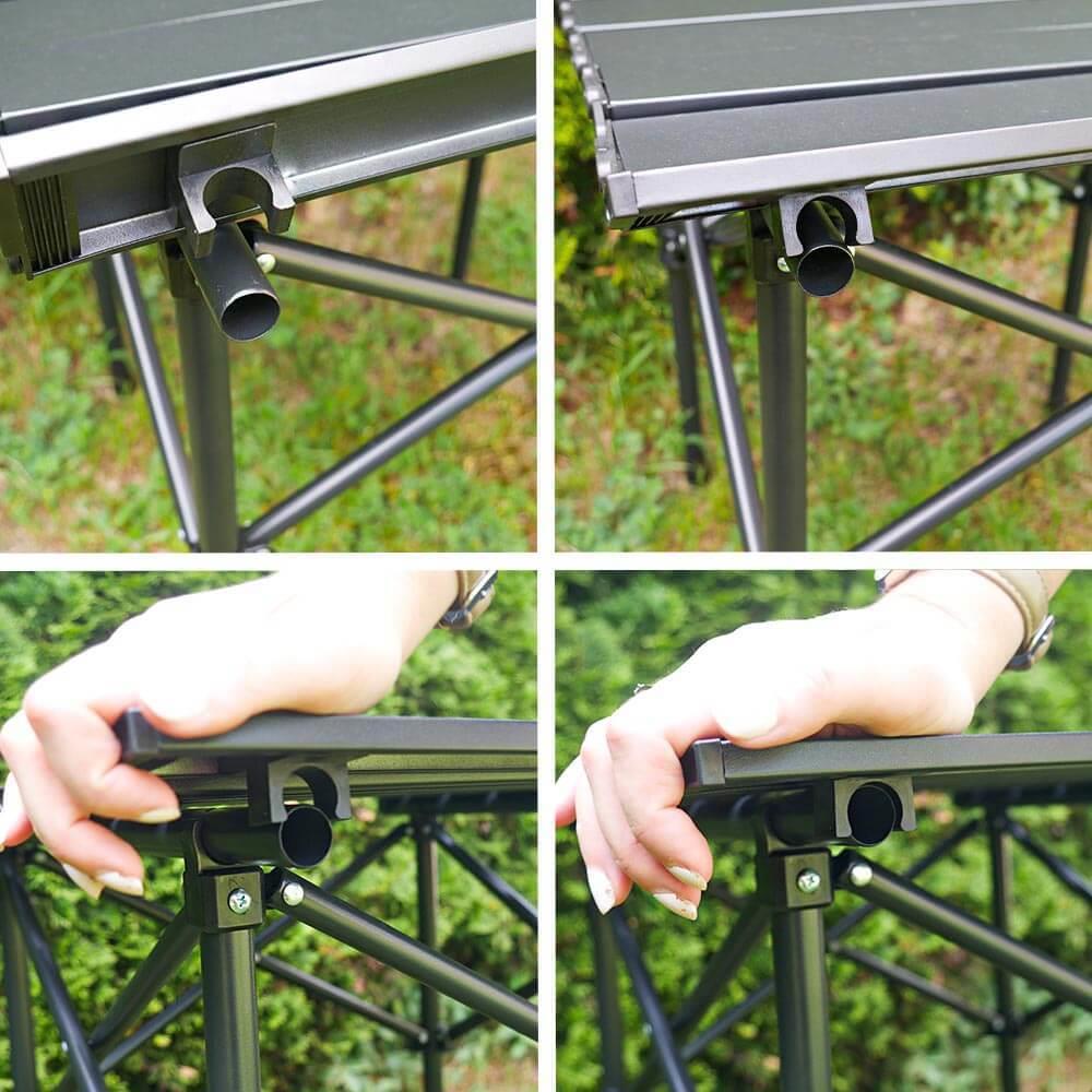 Masa oferă suficient spațiu pentru mâncare, băuturi, ustensile pentru grătar sau alte echipamente. Dimensiunile compacte permit transportul și depozitarea ușoară, fie că călătoriți cu mașina sau cu rulota. Bucurați-vă de mese confortabile oriunde v-ați afla, cu această practică masă de camping.
