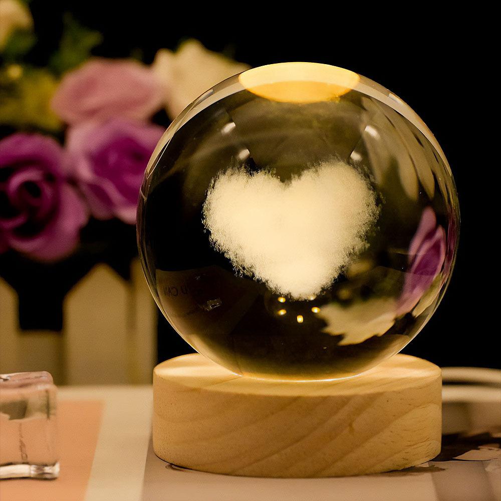 Această sferă de sticlă cu iluminare LED este o mică decorațiune care poate avea un efect mare. Sfera de sticlă este așezată pe un suport elegant din lemn, iar datorită iluminării LED delicate creează o atmosferă magică, mai ales seara – fie ca o veioză difuză, fie ca un accesoriu stilat pentru interior.