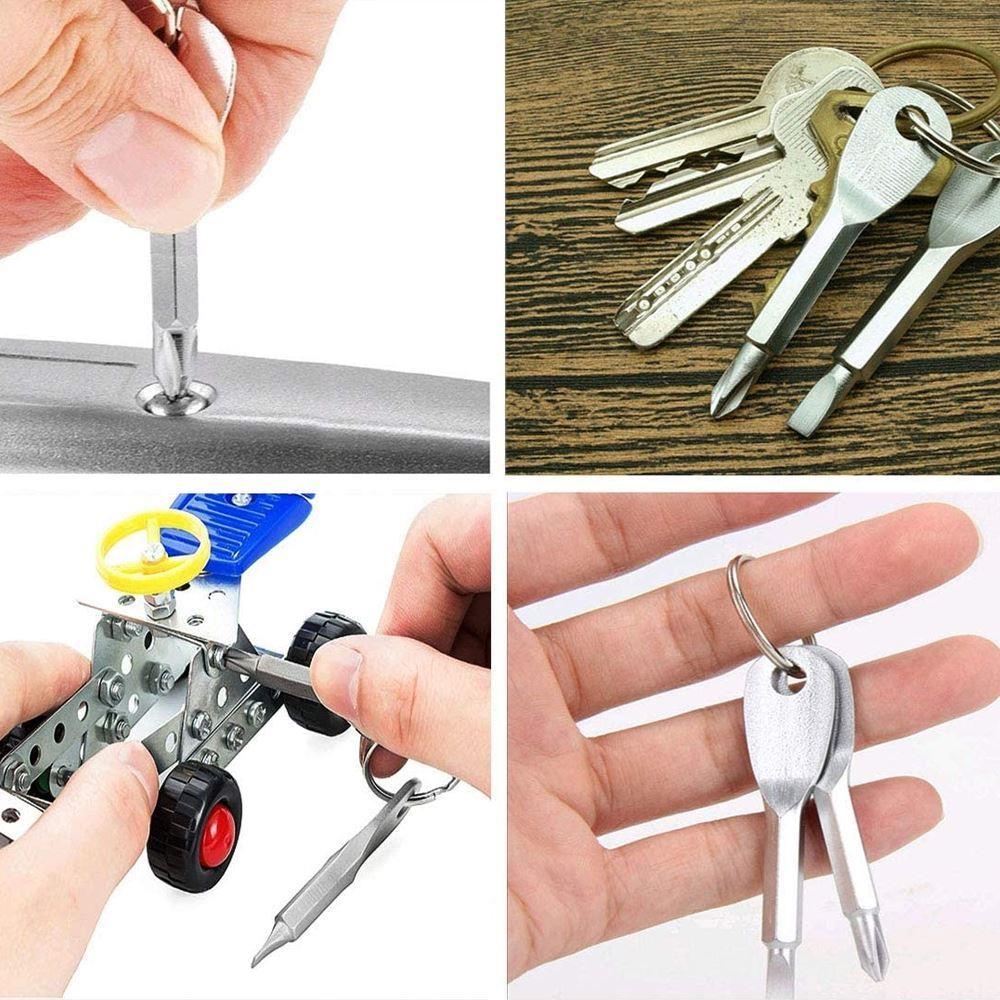 Șurubelnițele sunt într-adevăr foarte mici, dar își fac treaba excelent. Este suficient să le atașați la inelul de chei și astfel le veți avea mereu la îndemână pentru orice situație. Mini-șurubelnițele pentru chei pot fi folosite și ca breloc decorativ pentru pasionații de bricolaj și iubitorii de unelte.