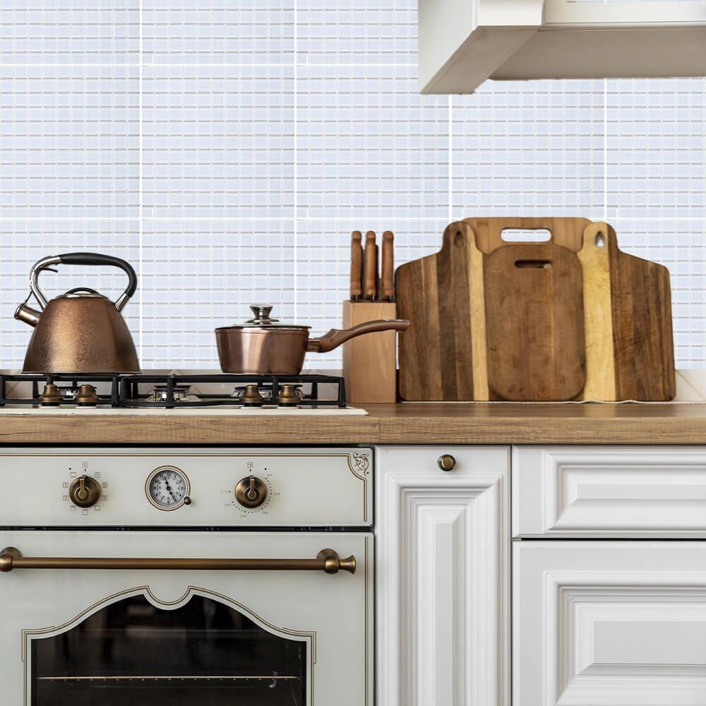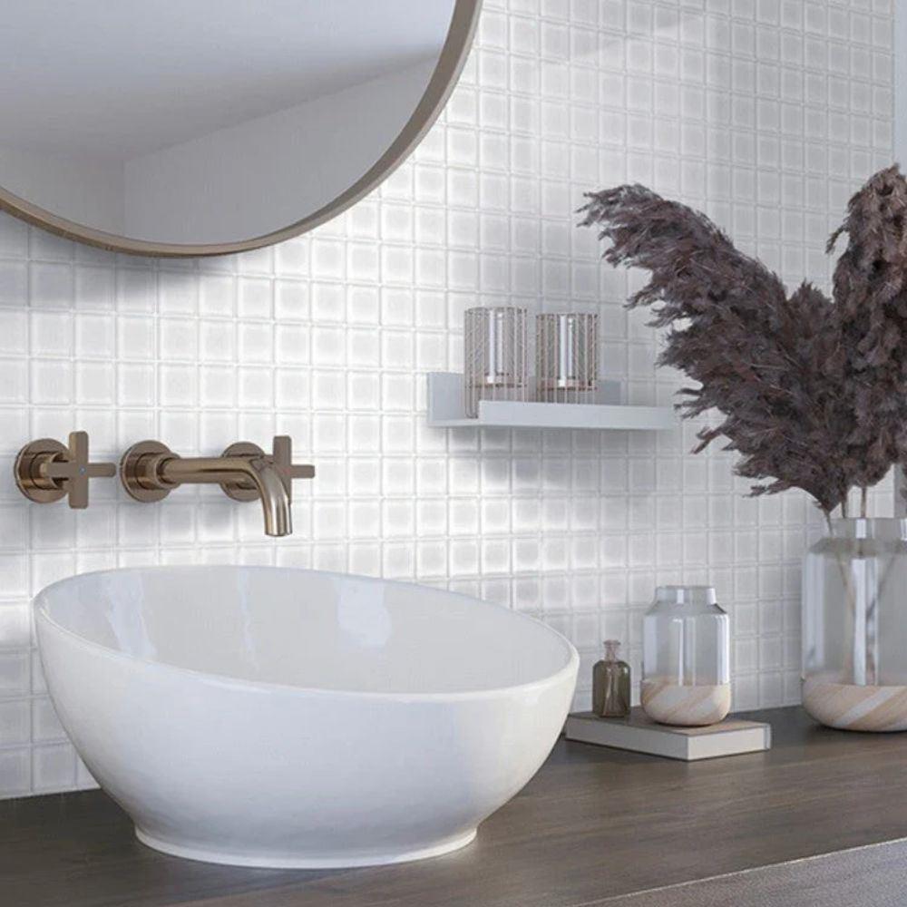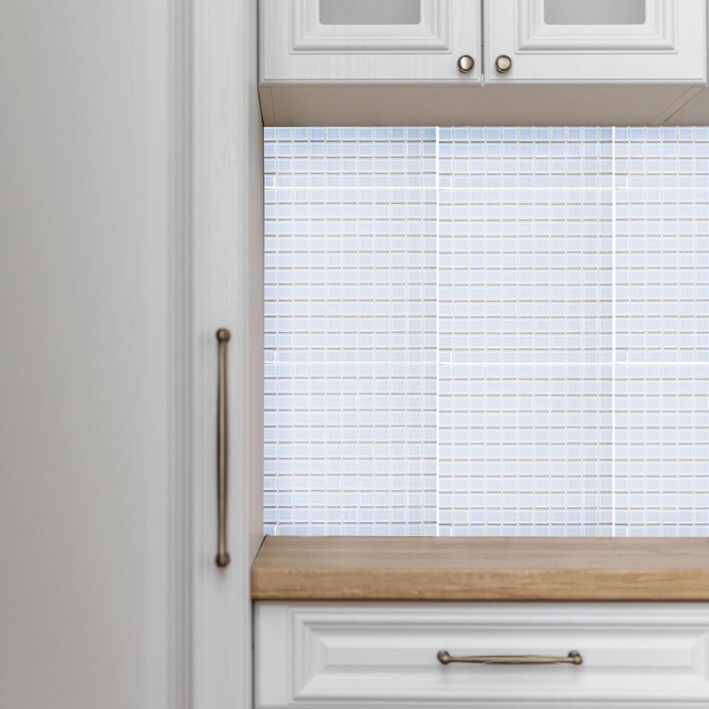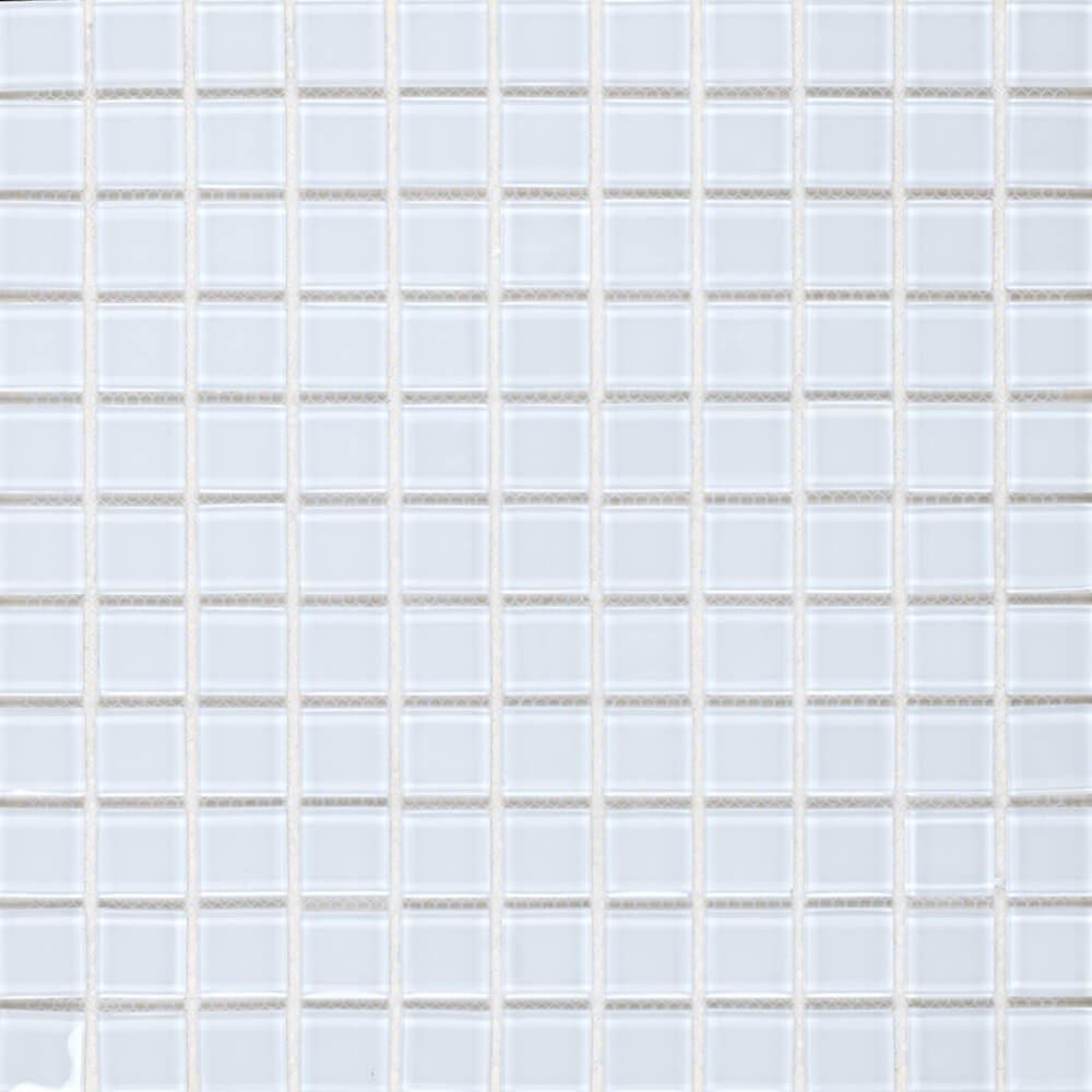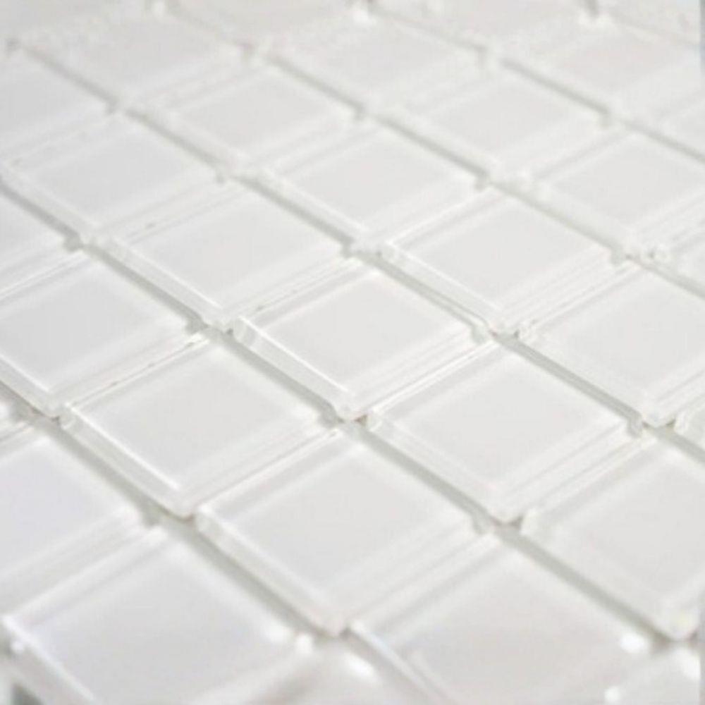 Mozaic de sticla pe grila 30 x 30 cm - alb - alb