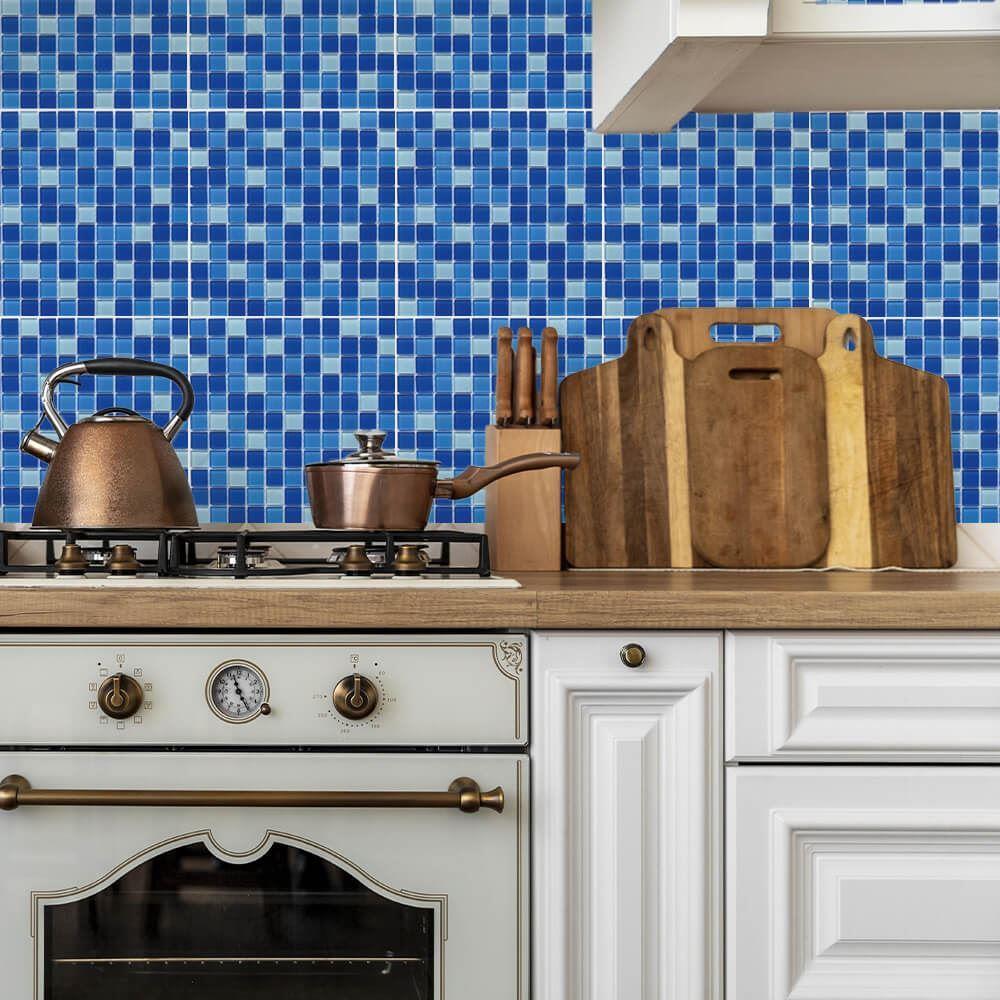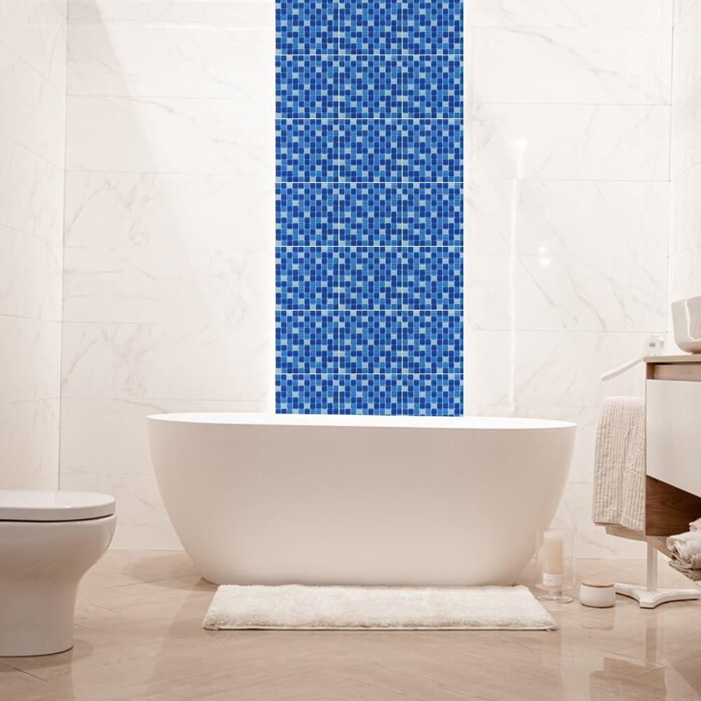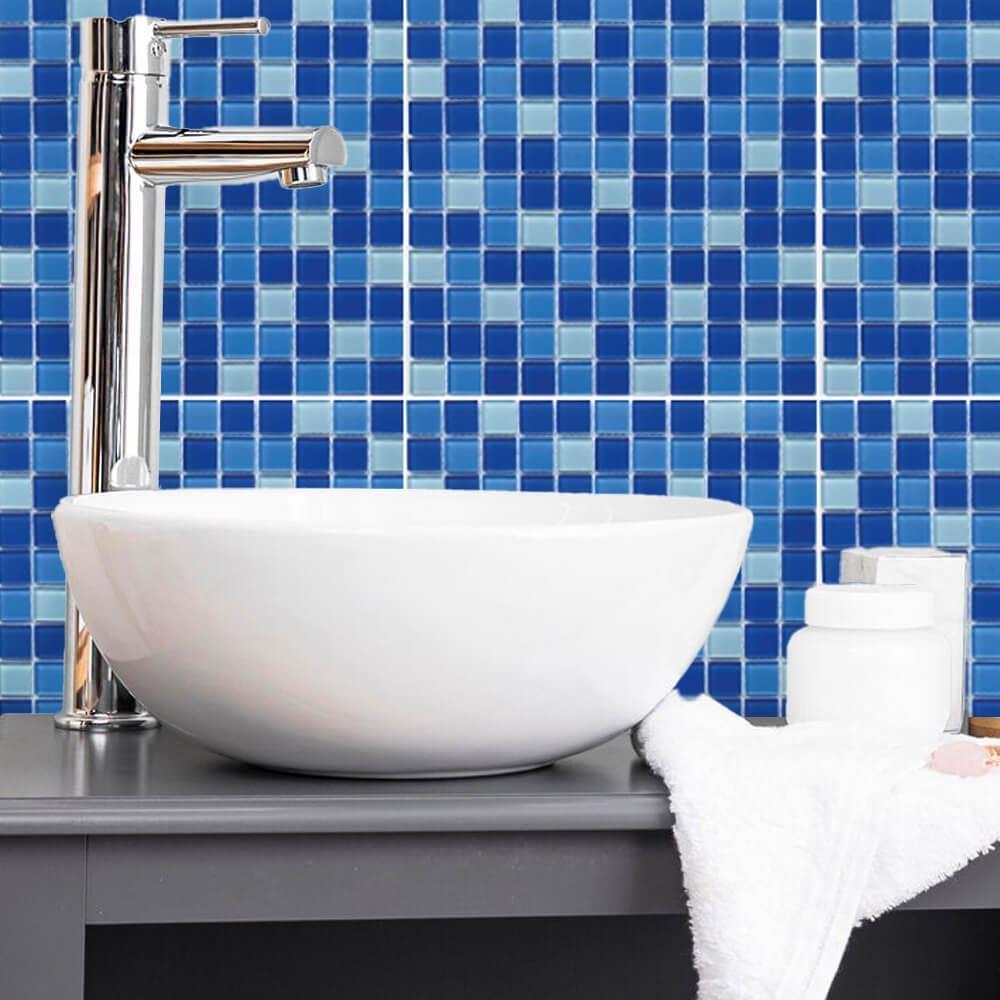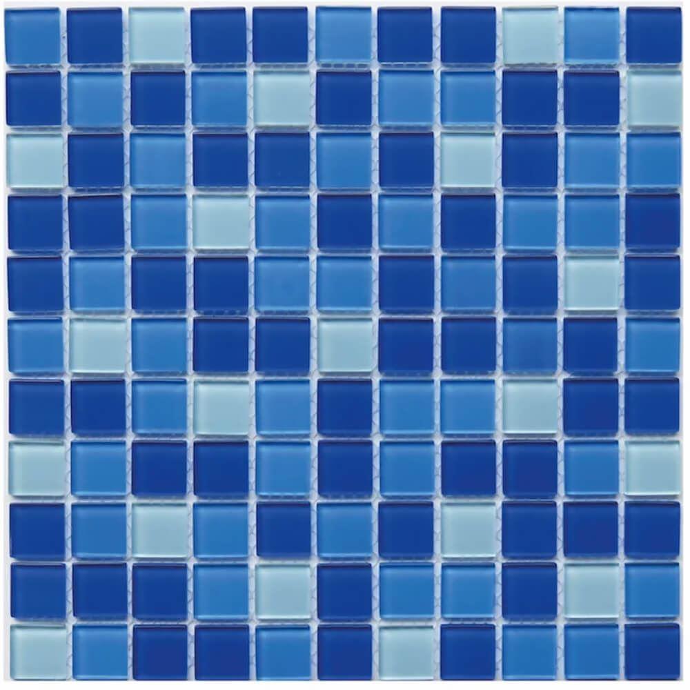 Mozaic de sticla pe grila 30 x 30 cm - alb - amestecați albastru