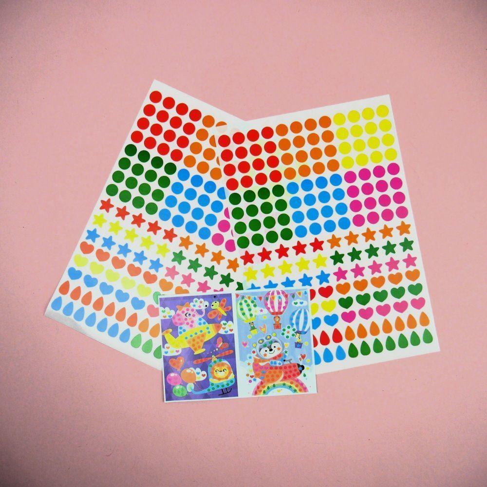 • 1× set de autocolante în formă de cercuri, inimioare, steluțe și picături