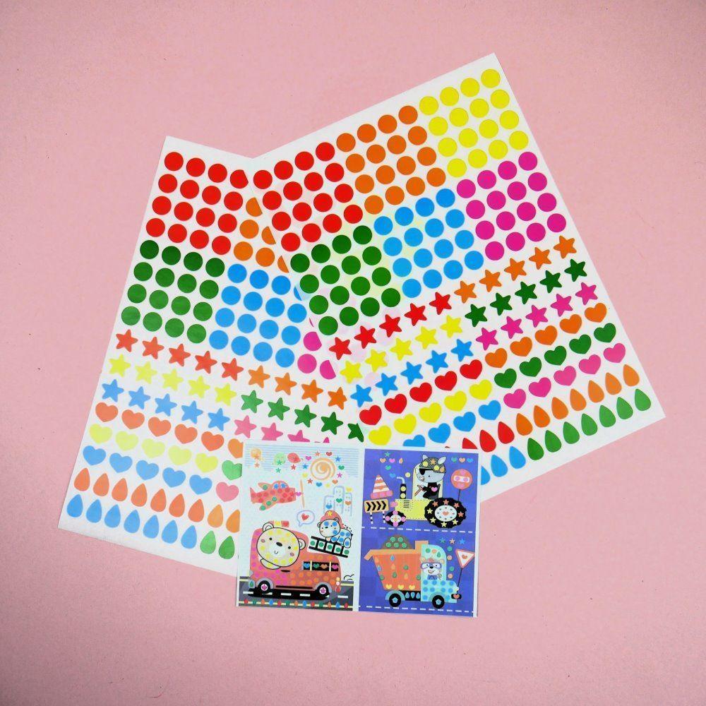 • 1× set de autocolante în formă de cercuri, inimioare, steluțe și picături