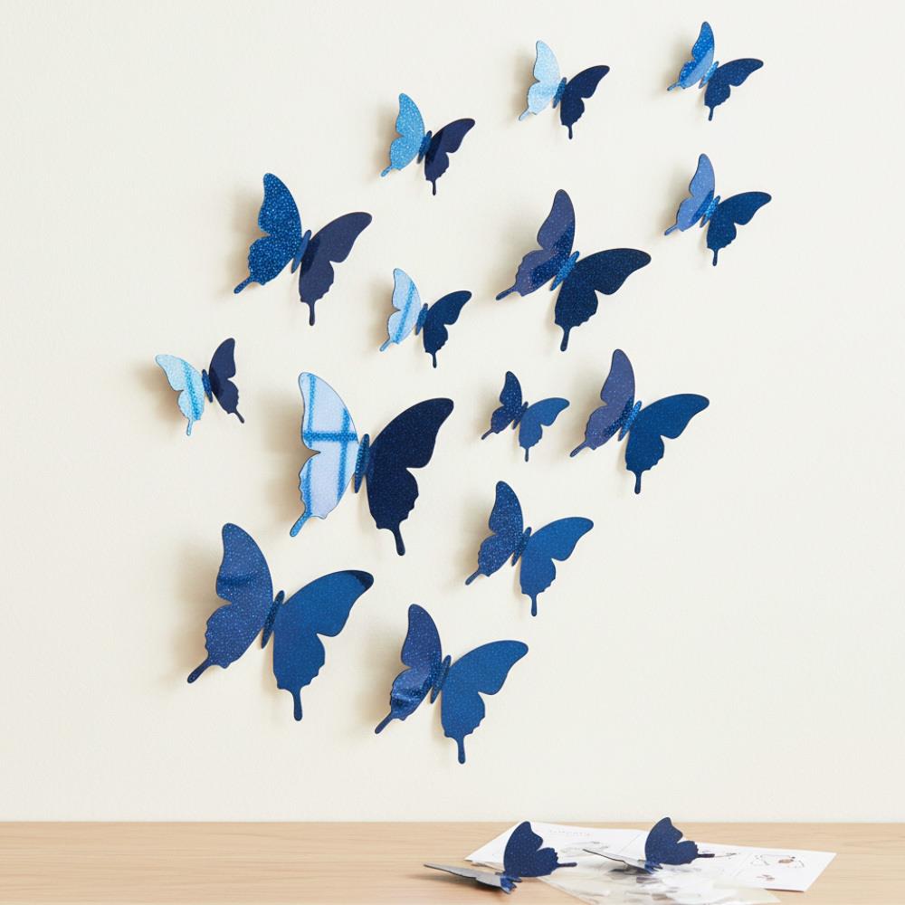 Oglindă decorativă fluturi 12 buc - albastru