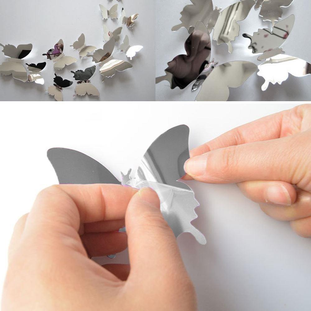 Dacă vă plac decorațiunile interioare unice și originale, cu siguranță vă vor plăcea acești fluturi oglindă. Depinde doar de dumneavoastră dacă lipiți fluturii în living pe perete, în dormitor pe dulap sau poate pe frigider. Puneți-vă fantezia la treabă și lipiți fluturii acolo unde se vor evidenția cel mai frumos. Fluturii vor rezista cel mai bine pe o suprafață netedă, netedă și curățată.