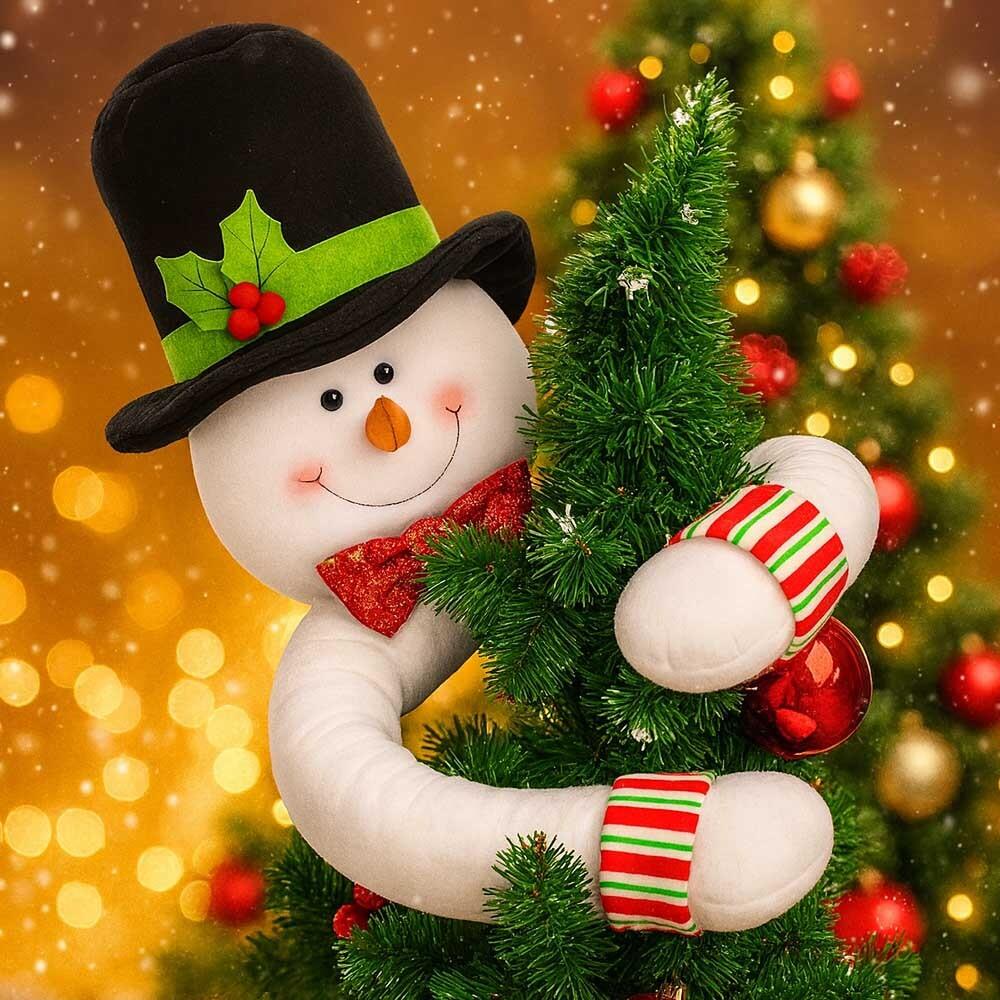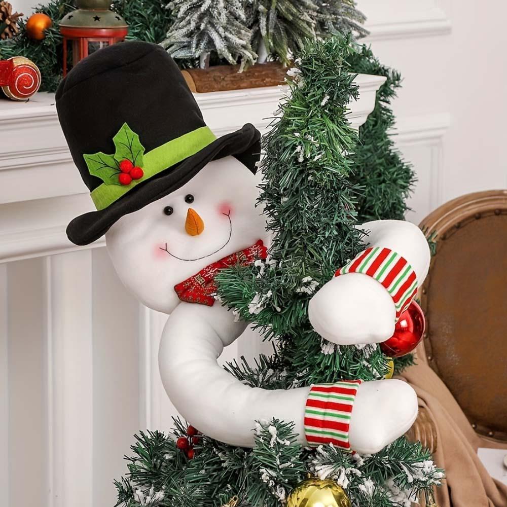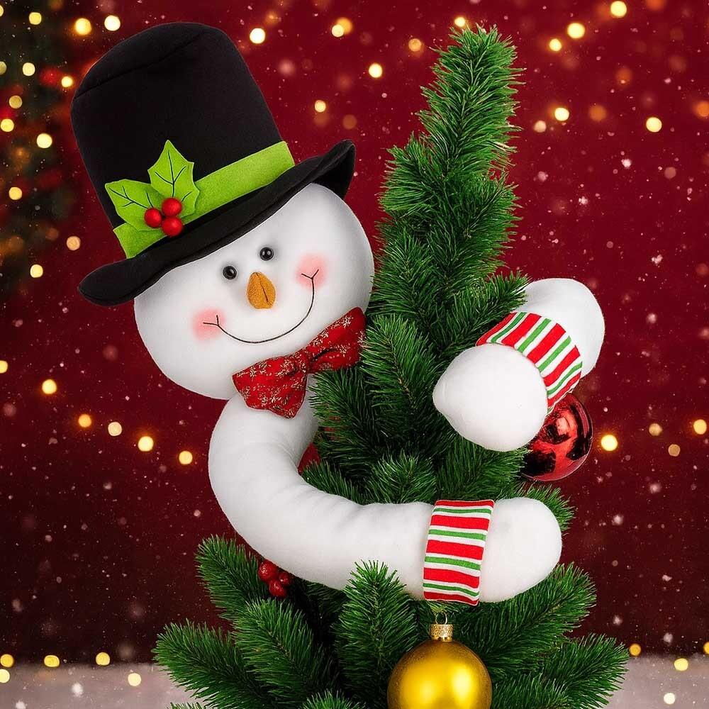 Vă gândiți cum să înveseliți decorațiunile de Crăciun anul acesta? Acest om de zăpadă pentru brad este o idee originală care vă va încânta. Arată ca și cum s-ar ascunde în spatele ramurilor și și-ar scoate capul curios afară. Zâmbetul său larg, pălăria neagră și panglica roșie creează un aspect prietenos și jucăuș. Atrage atenția de la prima vedere atât copiilor, adulților, cât și oaspeților, aducându-le un zâmbet pe buze. În plus, se asortează perfect cu culorile și decorațiunile tradiționale de Crăciun.