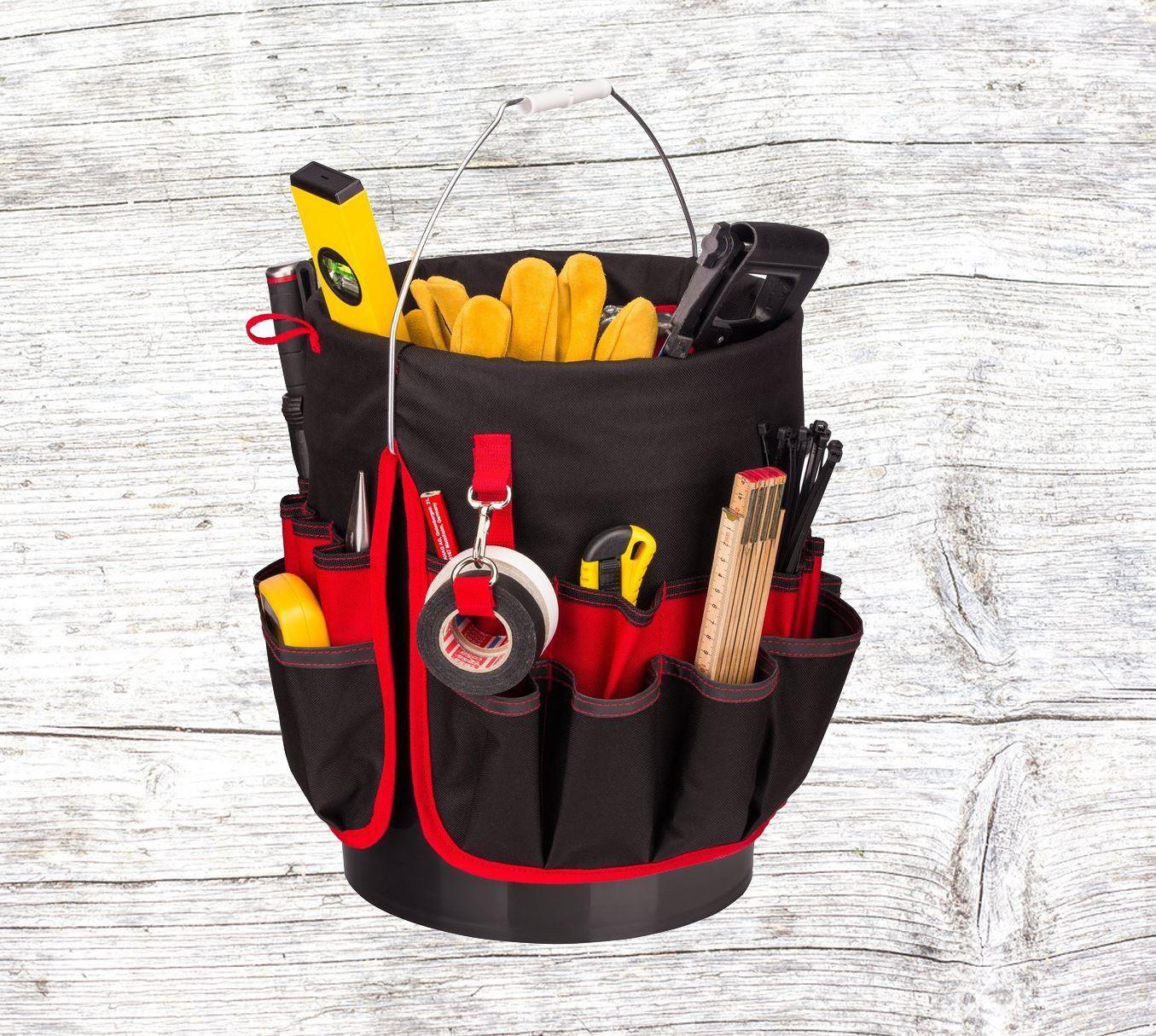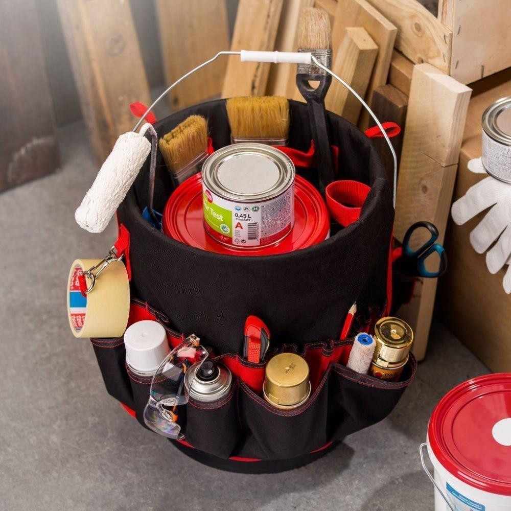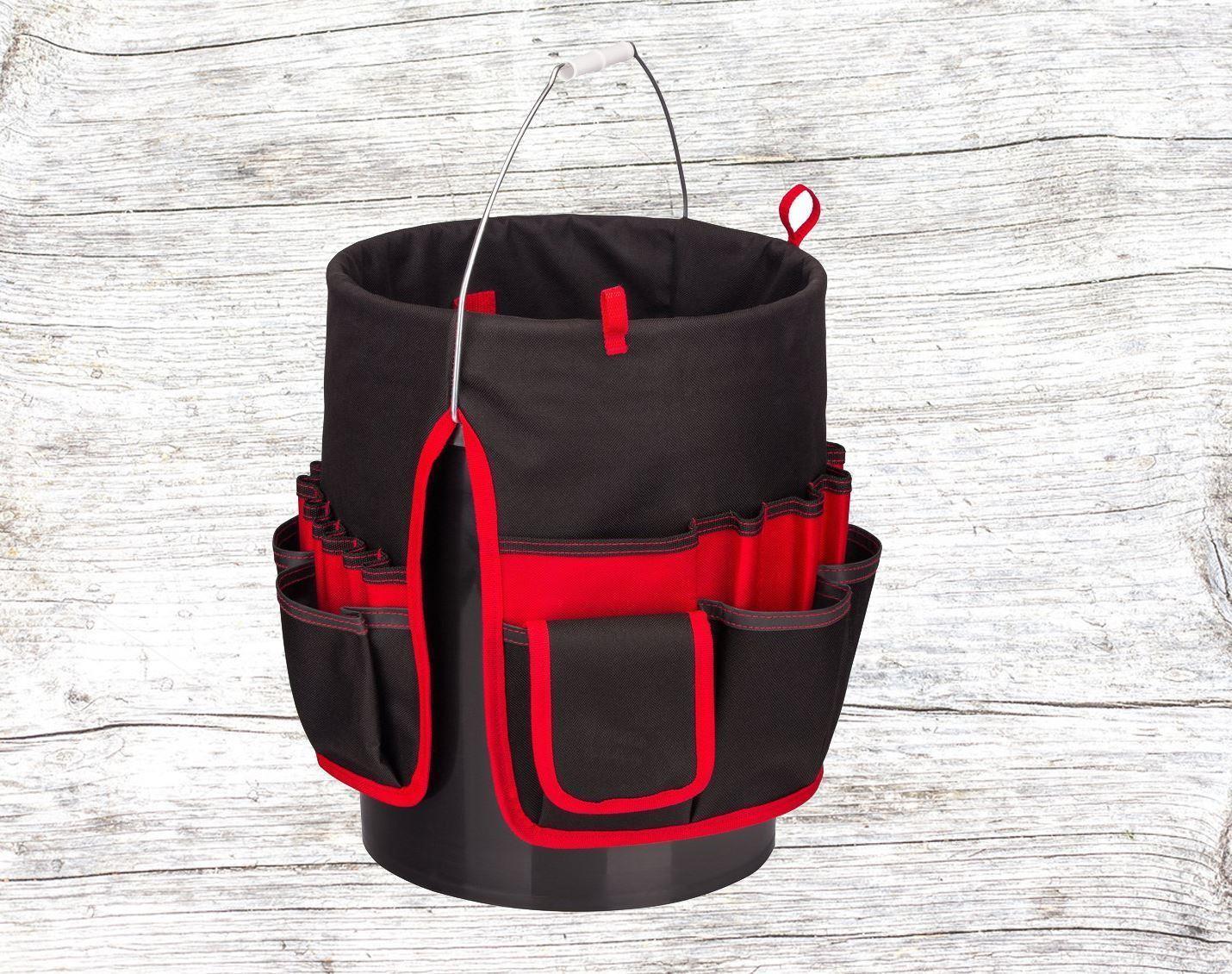 Datorită organizatorului pentru găleată, puteți avea toate uneltele aranjate clar și exact așa cum aveți nevoie. Organizatorul de unelte are formă circulară, astfel încât îl puteți fixa comod pe o găleată clasică. Uneltele pot fi puse în numeroase buzunare și compartimente funcționale, care sunt dispuse pe tot perimetrul. Cu organizatorul de unelte, munca va deveni o adevărată plăcere.