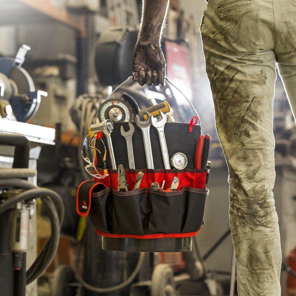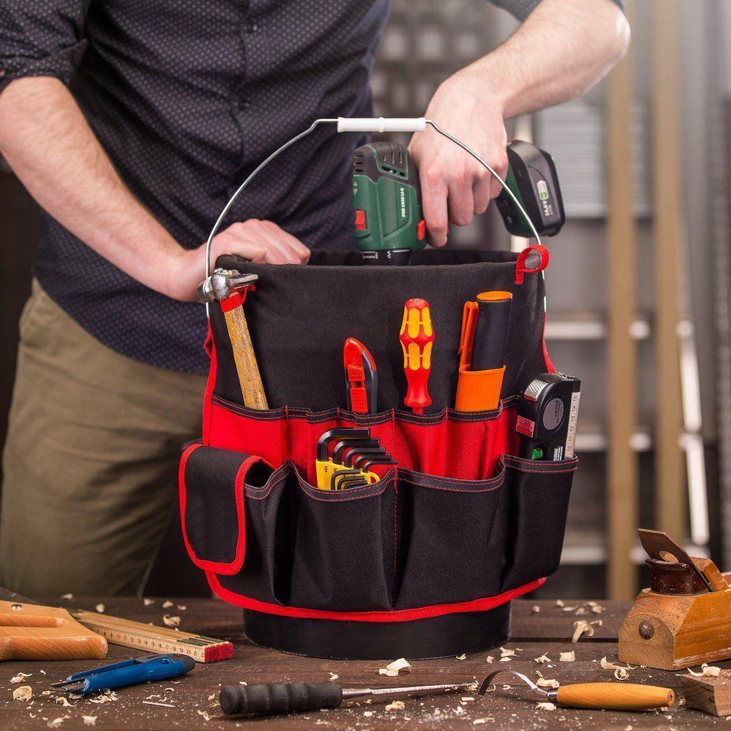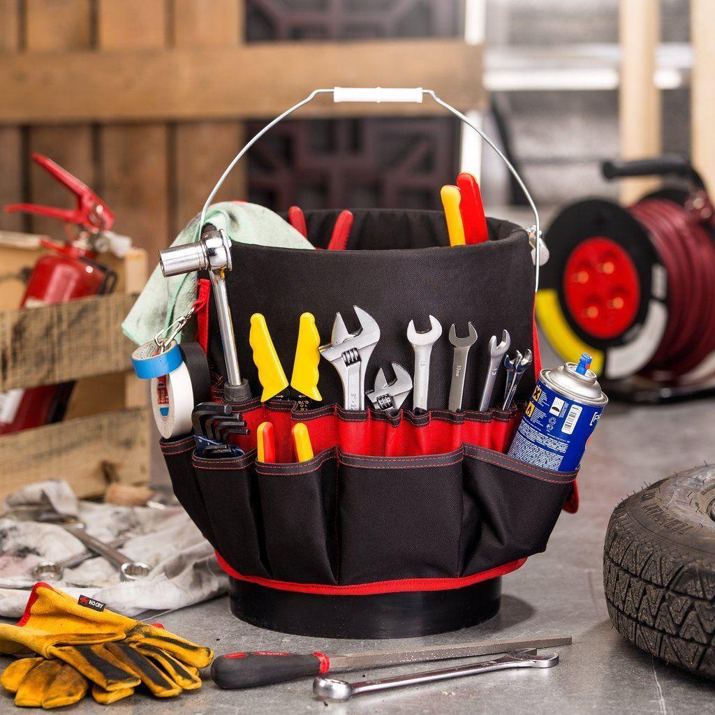 Datorită organizatorului pentru găleată, puteți avea toate uneltele aranjate clar și exact așa cum aveți nevoie. Organizatorul de unelte are formă circulară, astfel încât îl puteți fixa comod pe o găleată clasică. Uneltele pot fi puse în numeroase buzunare și compartimente funcționale, care sunt dispuse pe tot perimetrul. Cu organizatorul de unelte, munca va deveni o adevărată plăcere.