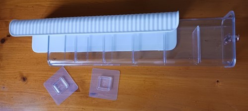 Iubiți ordinea perfectă în lucruri? Atunci acest organizator clar nu trebuie să vă lipsească. Are 6 compartimente pe care le puteți extinde liber, deoarece despărțitoarele dintre compartimente sunt detașabile. Datorită prinderii autoadezive, instalarea sa este ușoară și nu necesită găurire sau deteriorarea suprafeței.