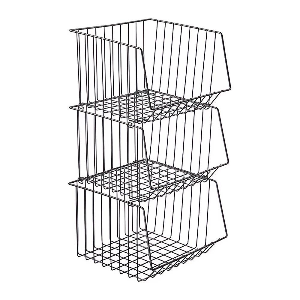 Fiecare coș din cele trei niveluri poate fi folosit separat sau pot fi ușor suprapuse pentru a crea un turn practic. Cadrul metalic solid cu finisaj negru este rezistent și ușor de curățat.