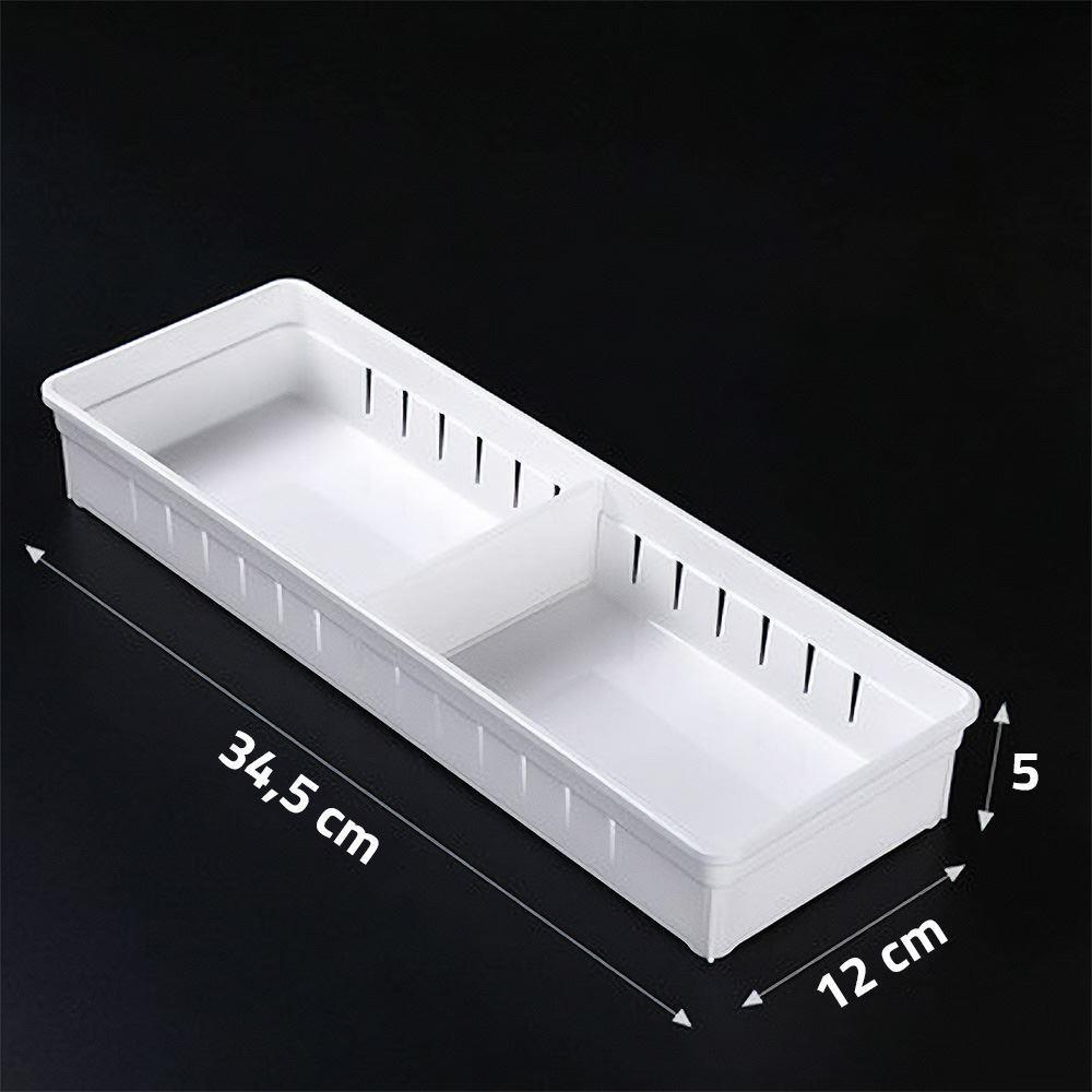 Dacă aveți nevoie să organizați lucruri în sertarul din bucătărie, în sertarul din baie sau în noptieră, acest organizator este cea mai bună alegere. Organizatorul este fabricat într-o culoare albă neutră, astfel încât nu deranjează vizual și se potrivește cu orice sertar. Datorită versatilității și funcționalității sale, acest organizator vă va cuceri imediat.