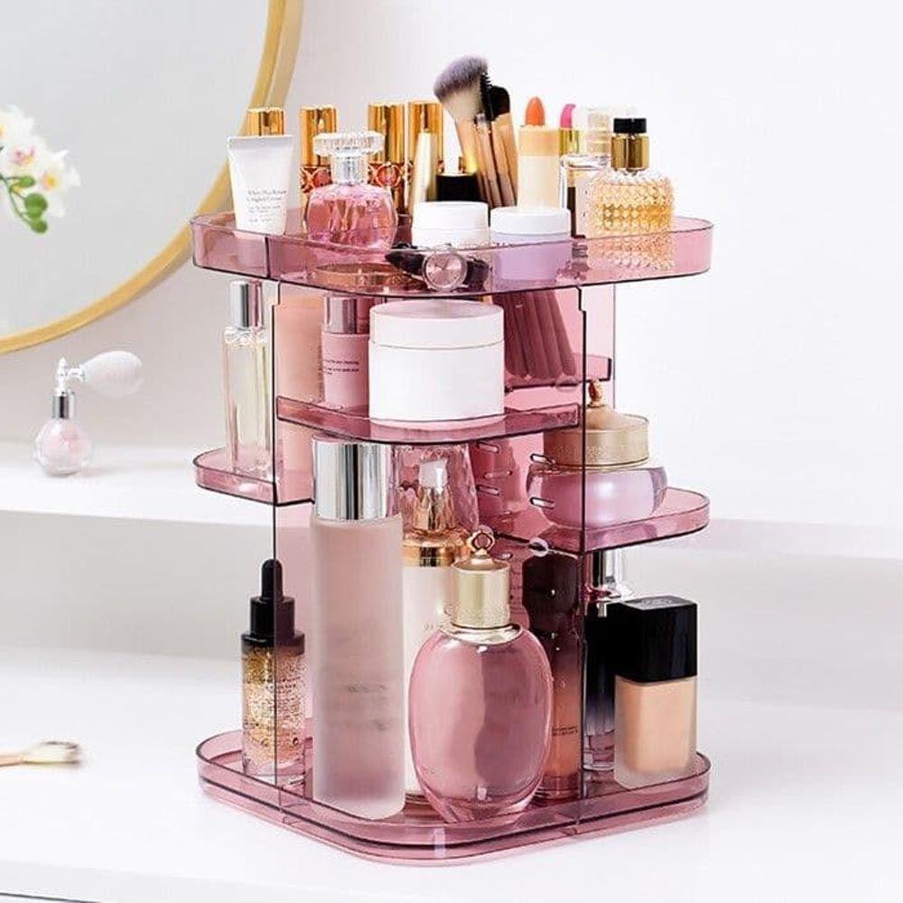 Organizer mare rotativ pentru cosmetice - roz transparent