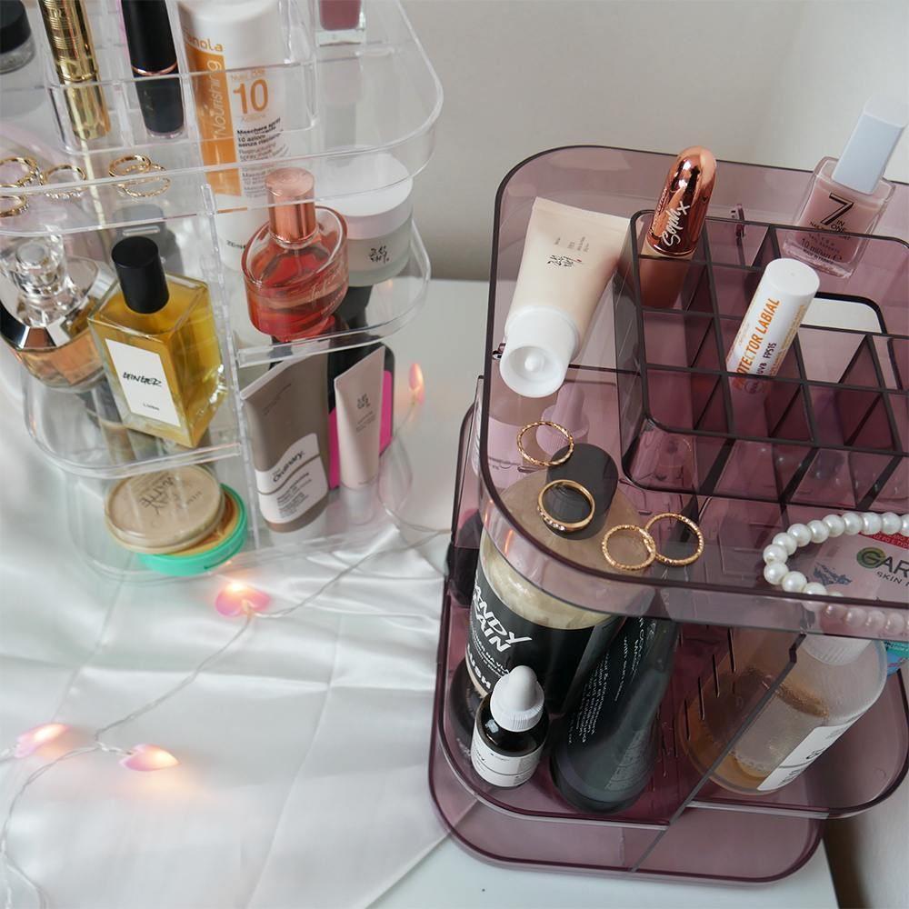 Trei niveluri cu compartimente de dimensiuni diferite îți asigură că vei avea totul la un loc și, mai ales, bine organizat. Datorită designului transparent vei economisi timp la căutare, iar fiecare produs va avea locul său rezervat. Redă ordinea rutinei tale cosmetice și casei tale, alege varianta coloristică potrivită și lasă-ți cosmeticele pe mâna acestui organizator care nu te va dezamăgi.