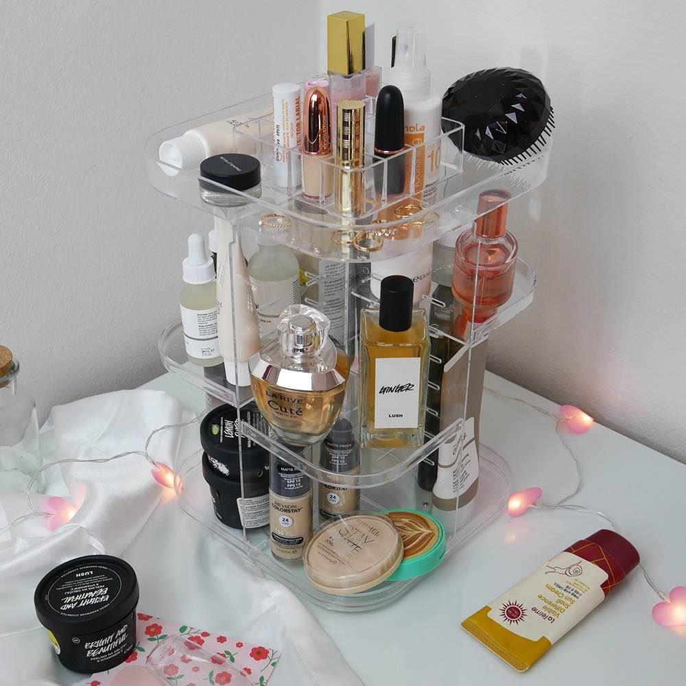 Fiecare pasionată de skincare știe că depozitarea produselor cosmetice poate fi uneori un adevărat coșmar. Sertarele se umplu, de pe rafturi mai cade câte o sticluță și tot te întrebi unde a dispărut crema folosită ieri? Previne produsele sparte și haosul – avem soluția pentru organizarea atât în baie, cât și pe măsuța ta de toaletă. Cu acest organizator rotativ poți spune adio dezordinii și te poți concentra în liniște pe răsfățul pielii tale.