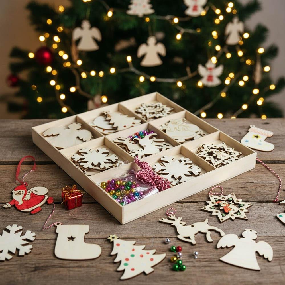 Ornamente de Crăciun din lemn de colorat - 32 de bucăți