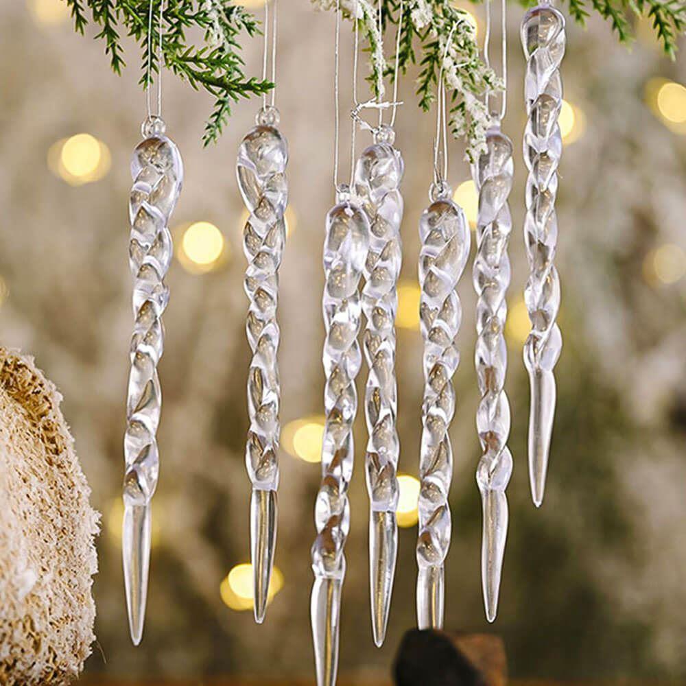 Sunt inspirate de frumusețile naturale ale iernii și vor aduce o atmosferă magică locuinței tale. Țurțurii sunt realizați din plastic transparent și au o suprafață lucioasă care reflectă lumina. Într-un pachet găsești 12 bucăți de țurțuri pe care îi poți agăța la ferestre, în brad, îi poți folosi ca decorațiuni de masă sau îi poți atârna prin toată casa.
