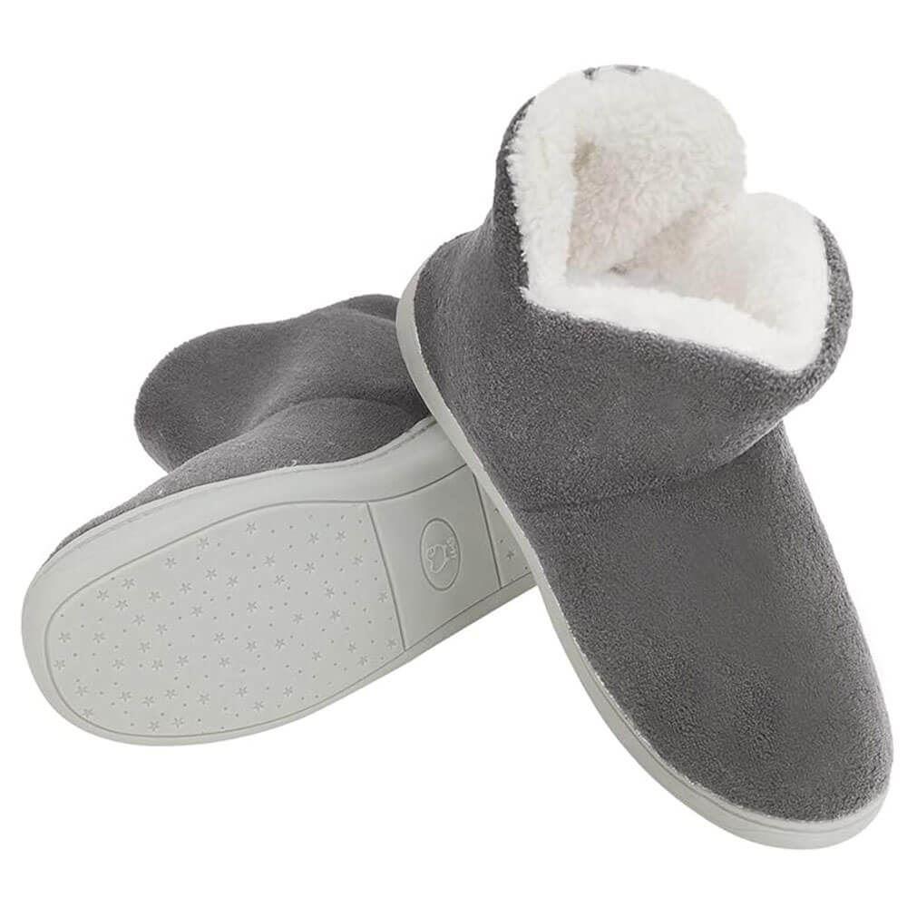 Papucii căptușiți creează adevărata atmosferă confortabilă de acasă în serile lungi de iarnă! Blănița caldă și plăcută vă va încălzi picioarele și veți arăta elegant și acasă. Papucii la modă de culoare gri și cu o talpă tare sunt confortabili și izolează bine. În timp ce îi purtați nu veți simți frigul de la podea. Papucii sunt potriviți pentru purtarea în interior. Se pot spăla și în mașina de spălat la 30°. Profitați de un moment pentru voi și bucurați-vă la maxim de papucii călduroși. Faceți un foc în sobă, luați-vă o pătură, papucii și faceți-vă un ceai. Cea mai bună combinație de iarnă de care vă puteți bucura!