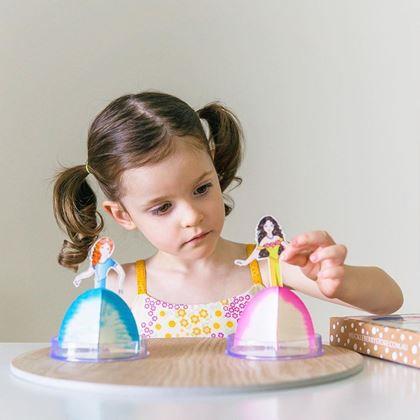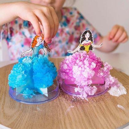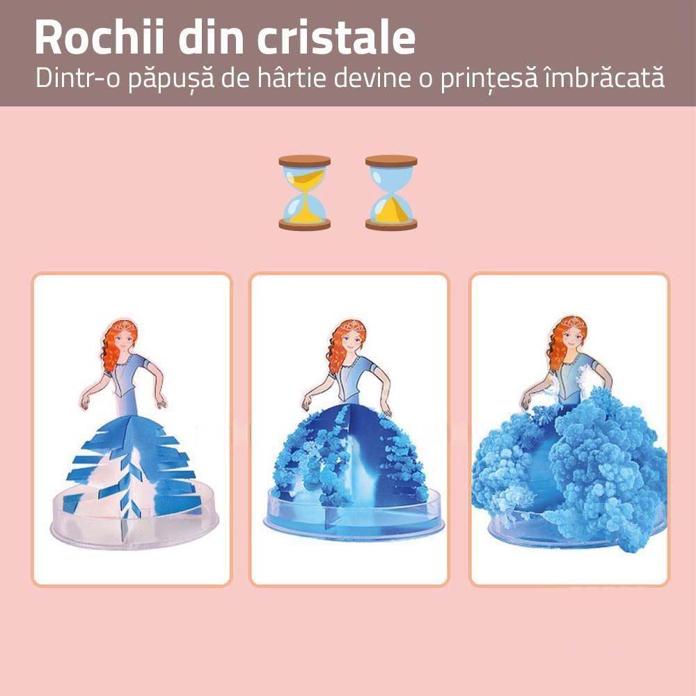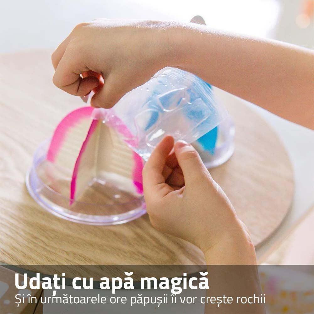 Păpușa magică înfloritoare este ca un vis devenit realitate pentru orice mică prințesă care crede în basme și magie. În fața ochilor săi, se desfășoară un spectacol colorat. Este suficient doar câteva ore, iar păpușa din hârtie începe să se îmbrace în rochii strălucitoare și colorate. Păpușa poate stimula, de asemenea, creativitatea și interesul pentru știință al copiilor, în timp ce observă procesul fascinant de creștere a rochiilor.