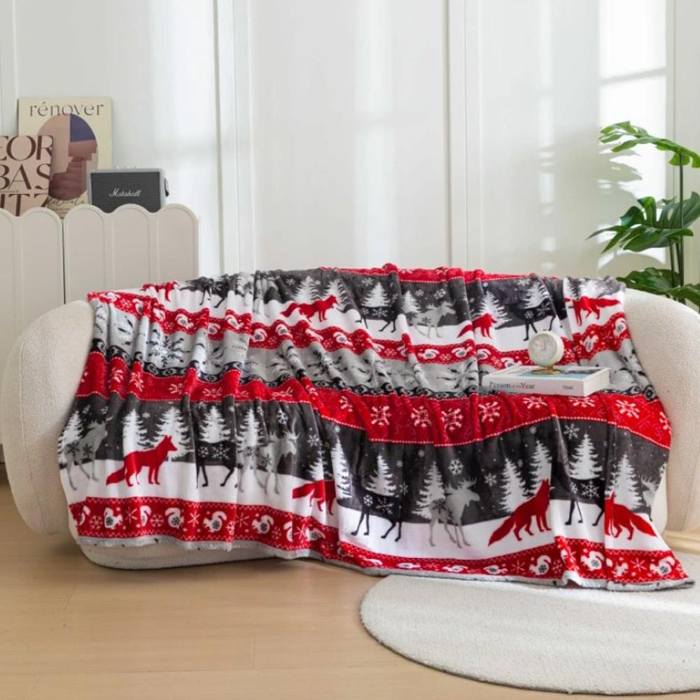 Pătură de microplus pentru Crăciun, regatul pădurii, 160 x 200 cm