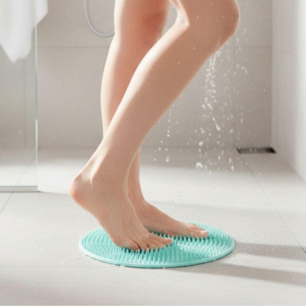 Bucurați-vă de un masaj direct în duș! Perii din partea superioară nu doar că vă masează plăcut, dar după adăugarea gelului de duș vă și spală în același timp. Ventuzele speciale din partea inferioară asigură că covorașul nu se mișcă deloc. Covorașul de masaj este o experiență plăcută pentru baie și un ajutor util pentru persoanele cu mobilitate redusă.