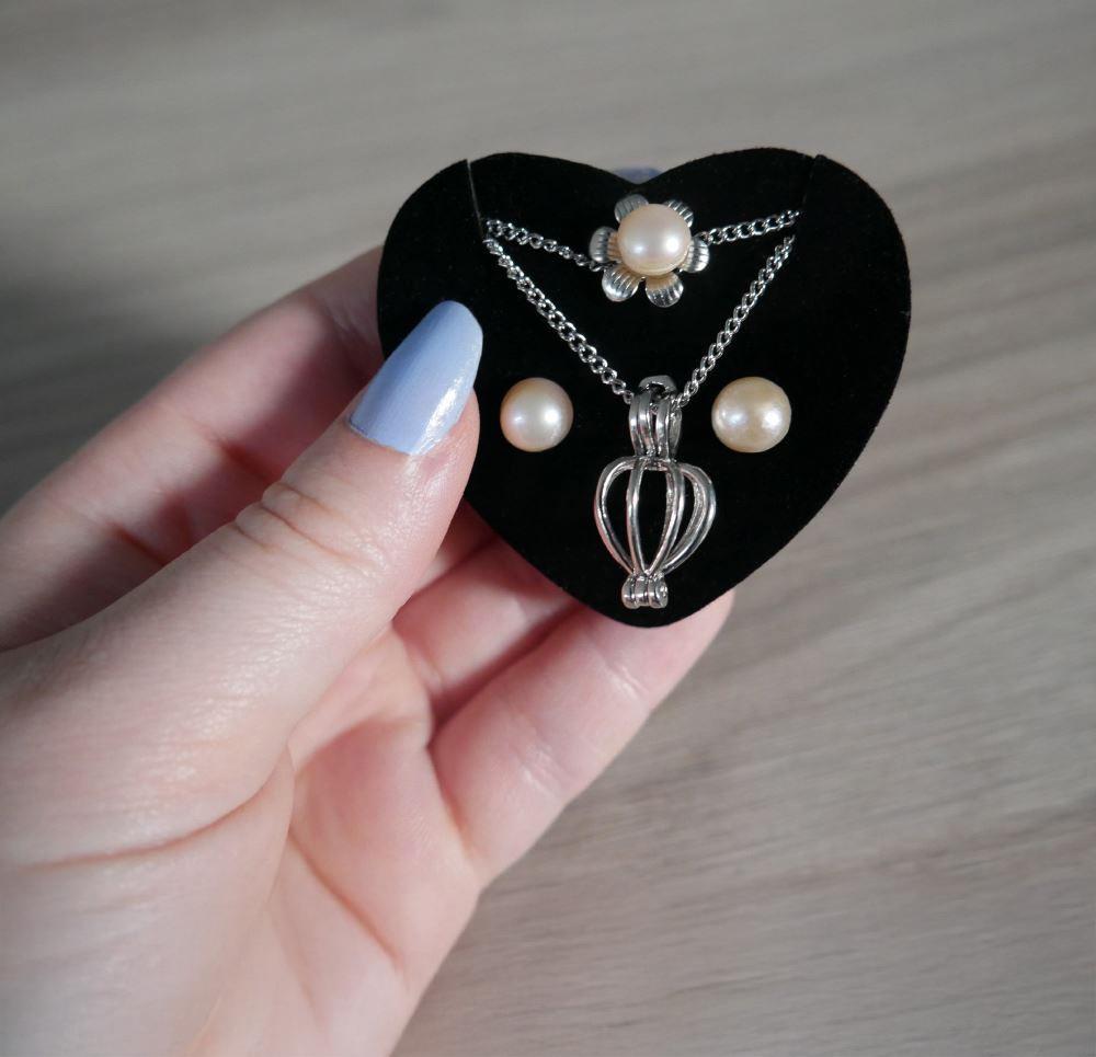Și care este cea mai mare curiozitate? În interiorul pachetului se află o scoică de stridie, iar în ea, o perlă colorată a dorințelor. Femeia își extrage singură perla și o pune într-un pandantiv. Astfel, va obține o bijuterie foarte originală pe care o poate purta mereu. În plus, pachetul conține cercei superbi și un inel. Întregul set este minunat proiectat, iar bijuteriile se potrivesc perfect între ele. Perla dorințelor mai ascunde și alt mister: niciodată nu veți ști ce culoare va avea, iar fiecare culoare are propria semnificație. Perla s-a format dintr-un bob de nisip și a crescut până la dimensiuni de 5–8 mm.