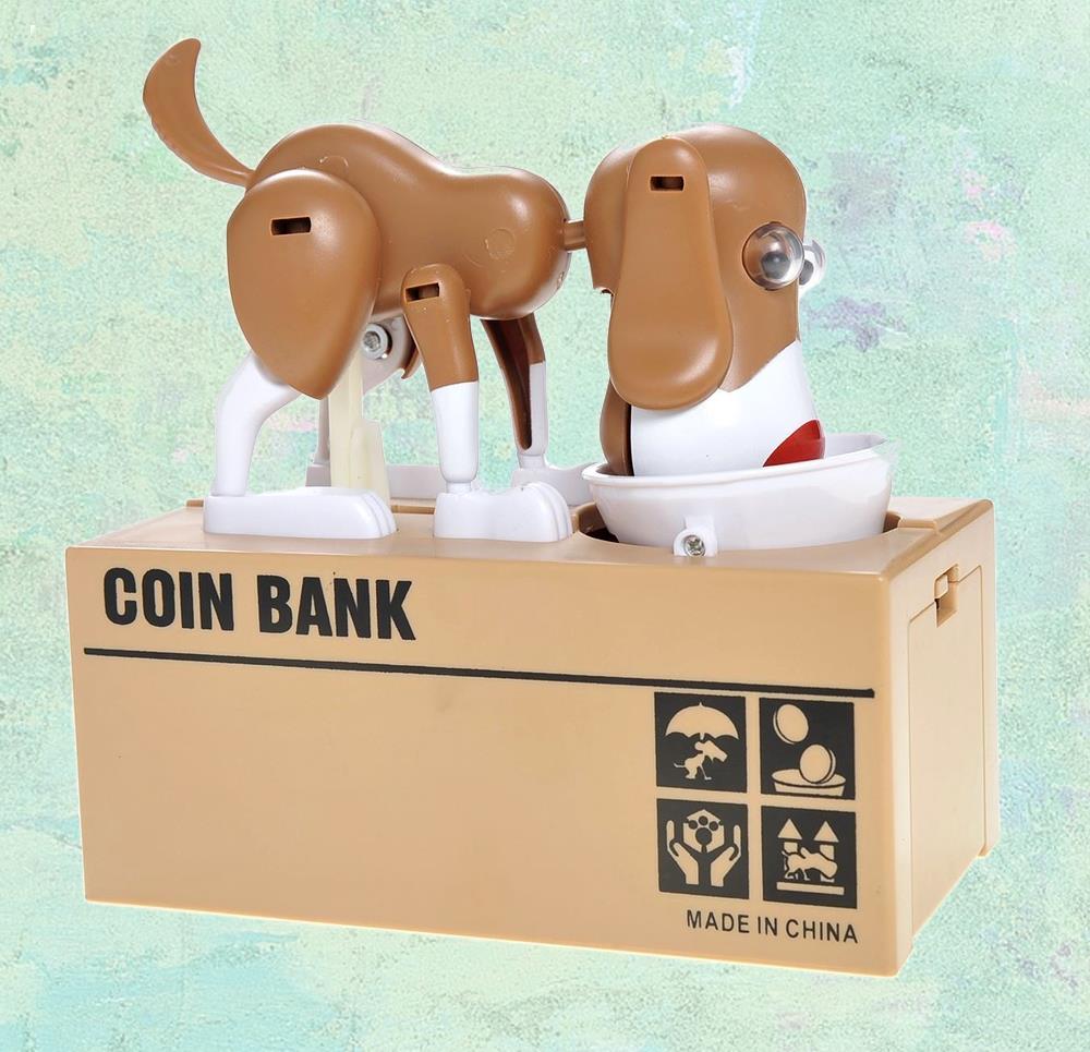 Acest cățeluș drăguț nu lasă să-i scape nicio monedă! Nu ezitați să îi încredințați economiile voastre. Vor fi în siguranță și le puteți recupera oricând doriți.