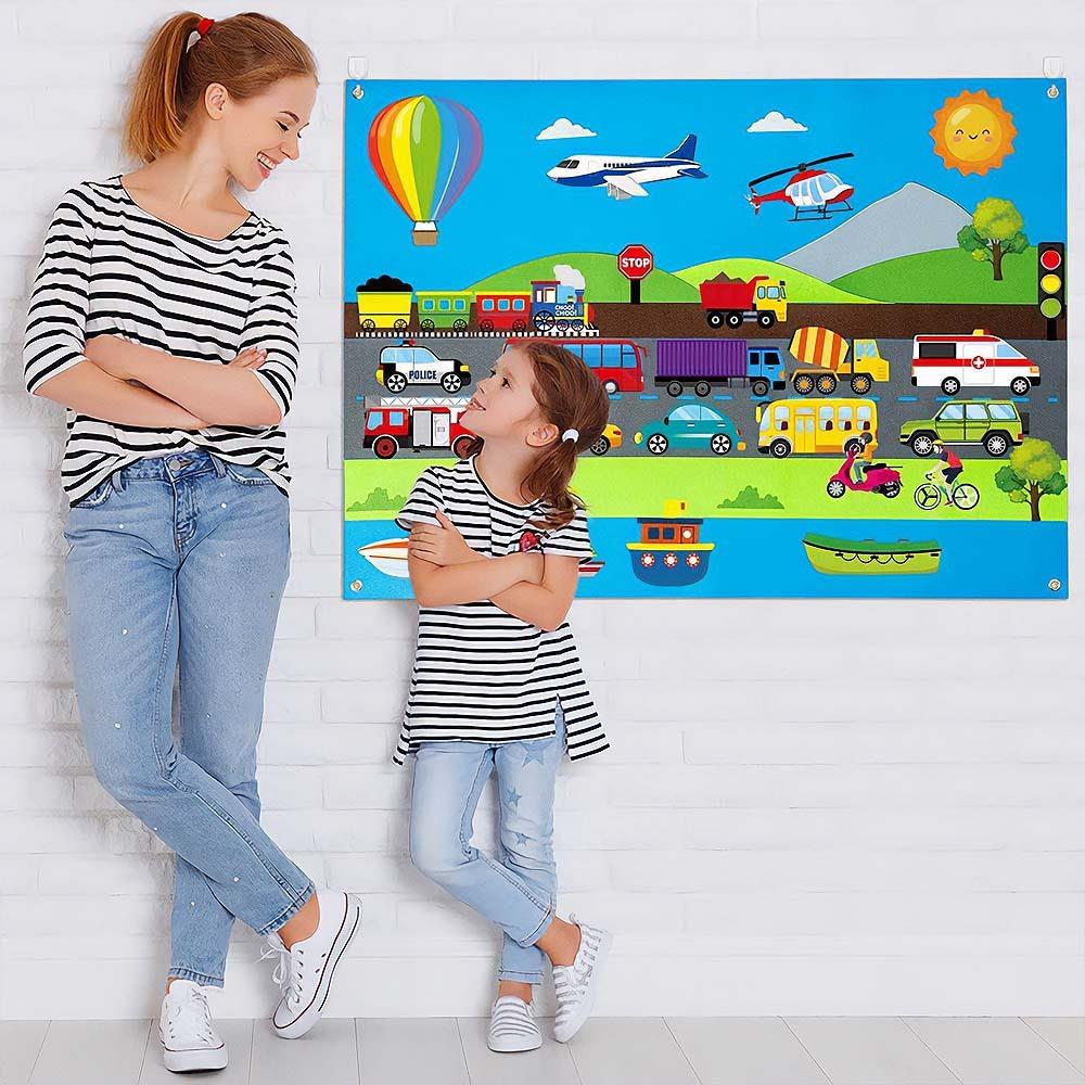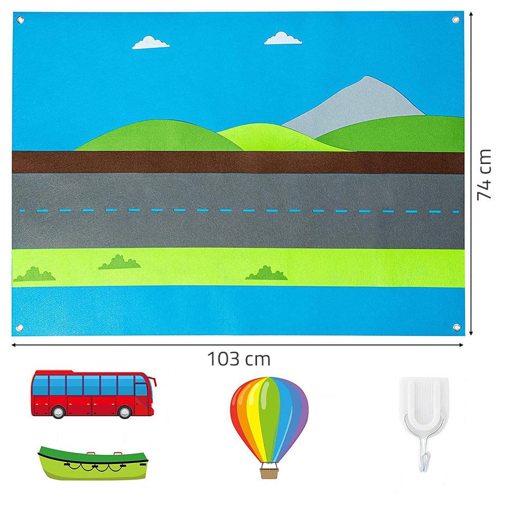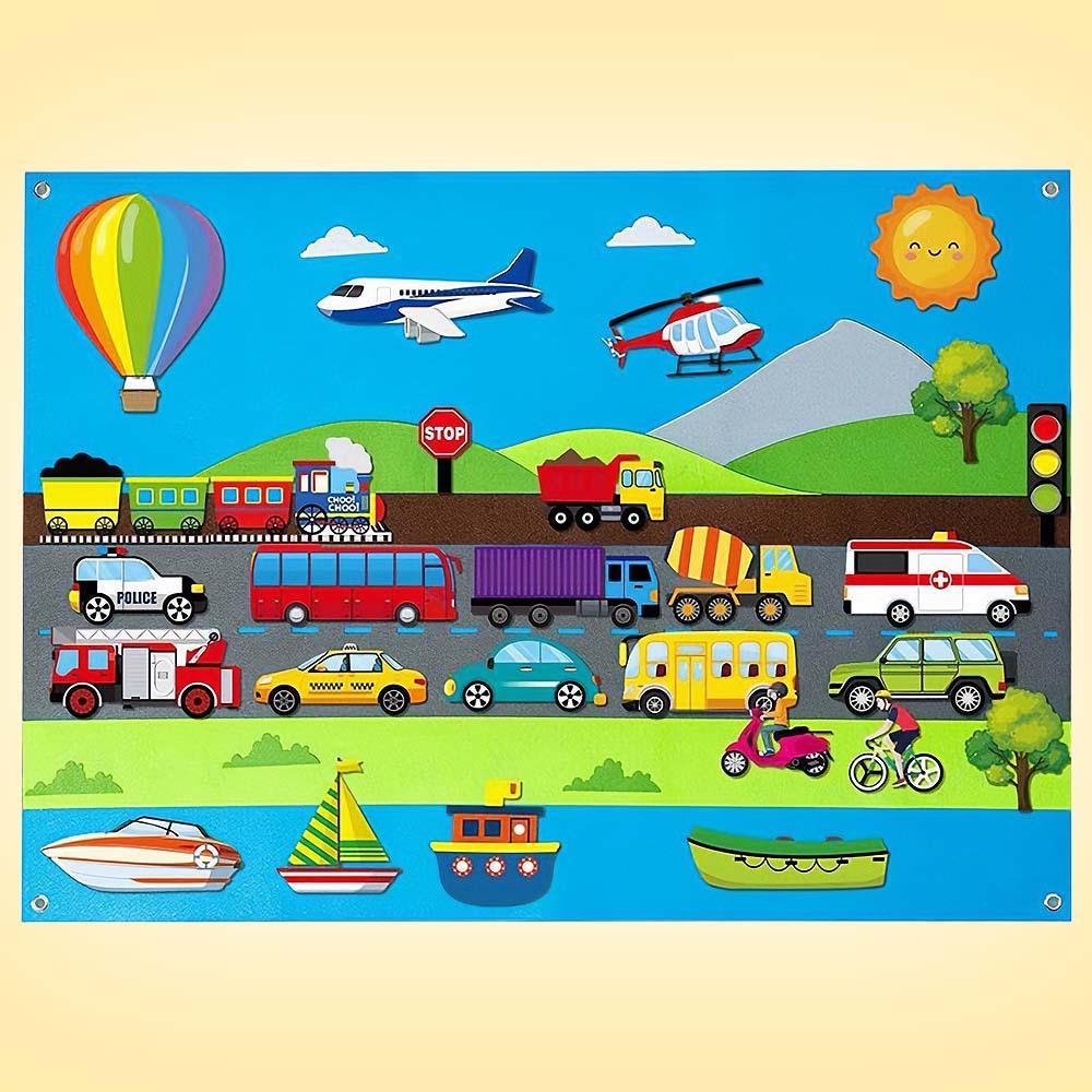 Placă didactică din pâslă pentru copii - mijloace de transport