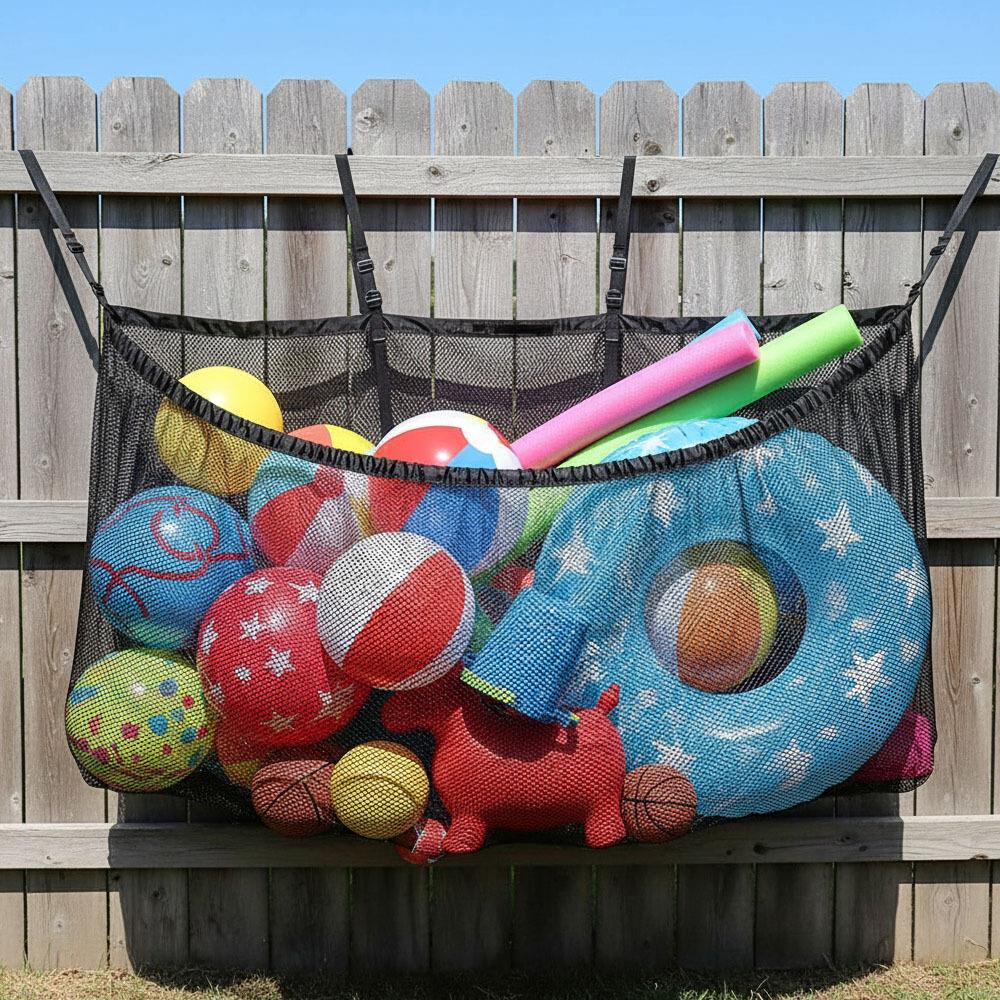 Aveți copii mici care se joacă zilnic în curte sau un cățel jucăuș pentru care o singură minge nu este de ajuns? Atunci sigur cunoașteți strângerea și căutarea zilnică a jucăriilor rătăcite. Dar unde să le puneți, pentru a avea un loc al lor, să nu ocupe prea mult spațiu și totodată să fie accesibile chiar și celor mai mici? Soluția este această plasă suspendată, pe care o puteți fixa ușor cu ajutorul cârligelor exact acolo unde copiii își fac de obicei locul de joacă. Veți căpăta astfel un ajutor de nădejde, cu care depozitarea lucrurilor devine mai ușoară, iar copiii vor învăța să facă ordine. Plasa este utilă și vara, atunci când multe jucării se udă – în plasă acestea se vor usca și nu vor murdări cutiile clasice de depozitare. O puteți folosi de asemenea pentru accesoriile gonflabile de la piscină sau alte lucruri ce este mai bine să fie depozitate la aer. Agățați-o de un zid, gard sau chiar în garaj și profitați din plin de potențialul ei – veți fi răsplătiți cu un spațiu ordonat, iar plasa va deveni astfel o parte indispensabilă a casei dumneavoastră.