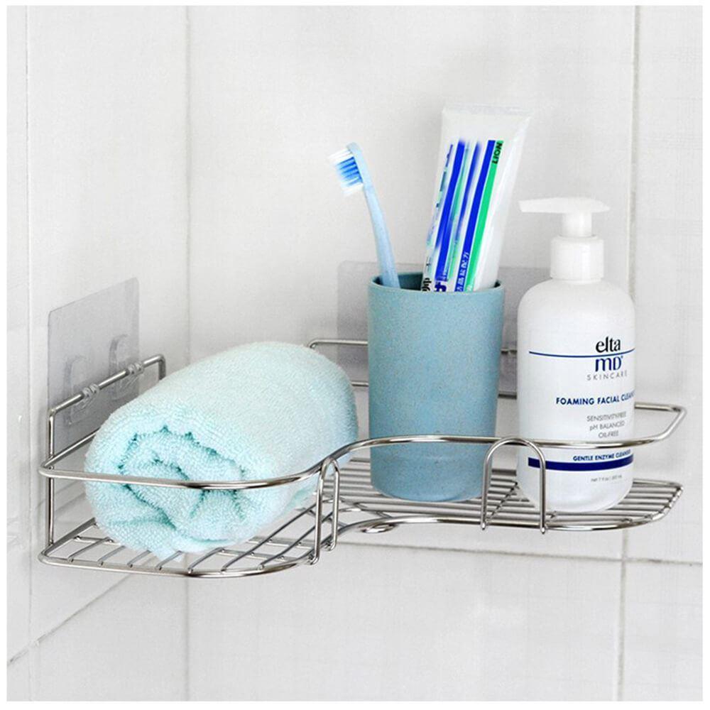 Spațiul de depozitare nu este niciodată suficient. Vă gândiți cum să organizați baia și v-ar prinde bine o poliță suplimentară? Vă este teamă să nu deteriorați faianța atunci când găuriți? Atunci alegeți această poliță de colț din oțel inoxidabil. Instalarea este extrem de simplă și nu necesită nicio unealtă. Polița se lipește pur și simplu și ține foarte bine.