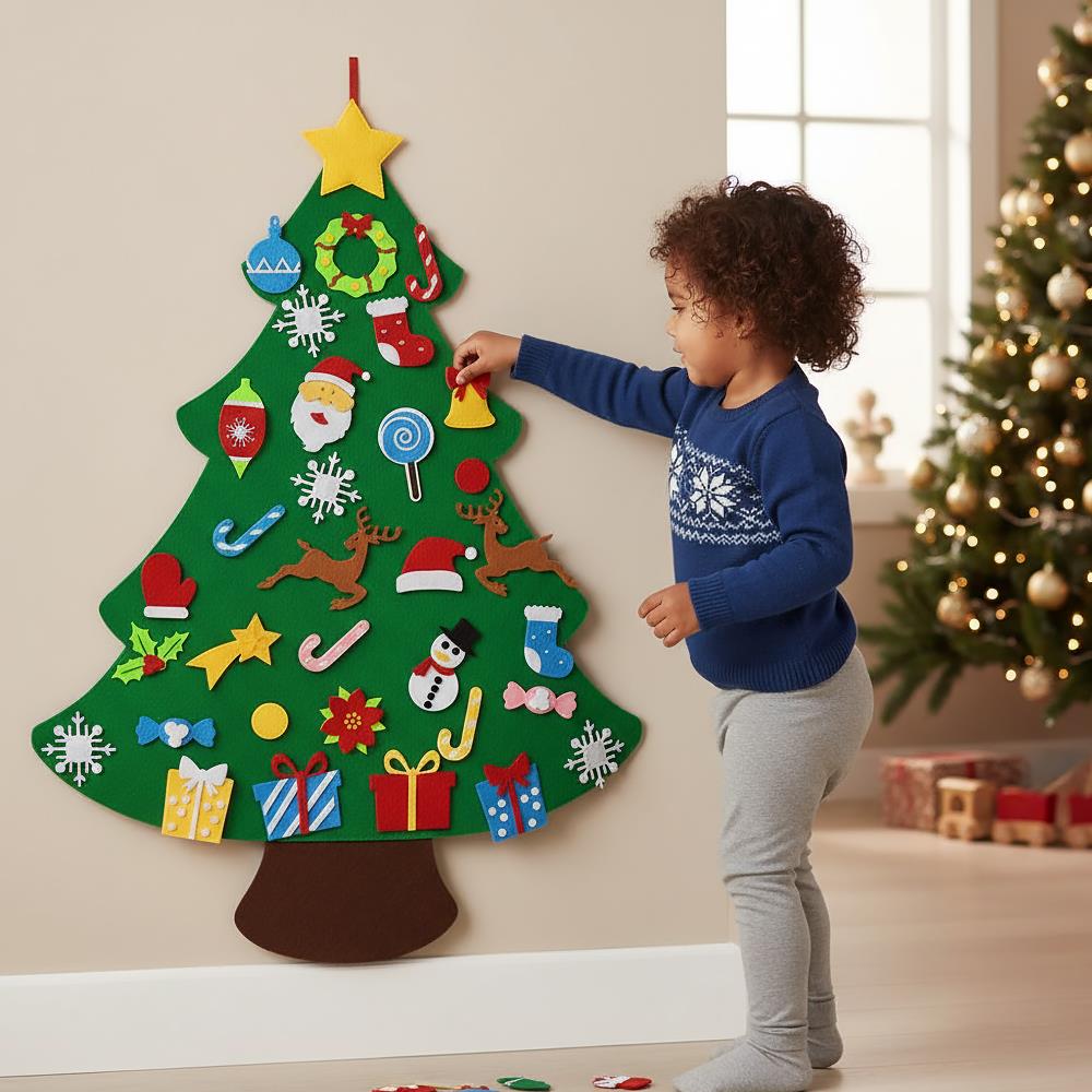 Crăciunul este cea mai frumoasă perioadă a anului! Diferite decorațiuni, ornamente și mirosul prăjiturilor de casă. Faceți așteptarea Moșului mai plăcută decorând acest brad de Crăciun de perete. Bradul de perete vine la pachet cu 30 de ornamente pe care copiii le pot așeza pe brad cum doresc. Ornamentele se atașează de brad cu ajutorul benzilor cu arici. Distracție ușoară, dar foarte creativă, nu doar pentru copii, ci pentru întreaga familie.