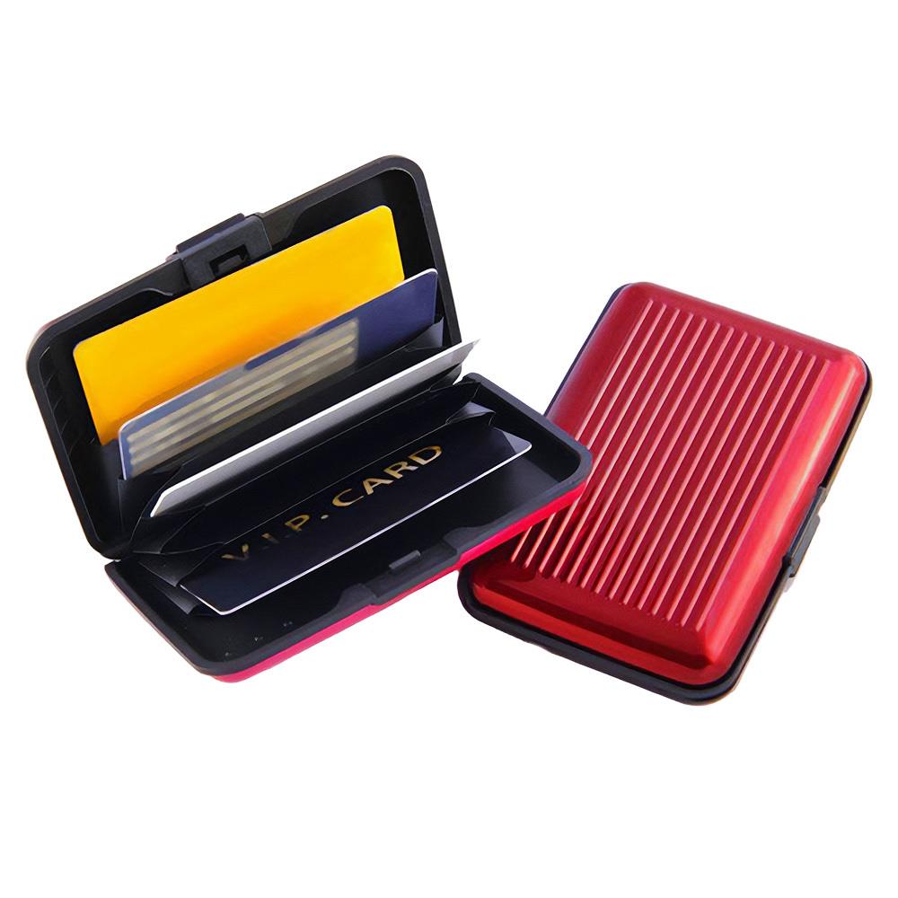 Portofel practic/cutie metalică pentru carduri - roșu