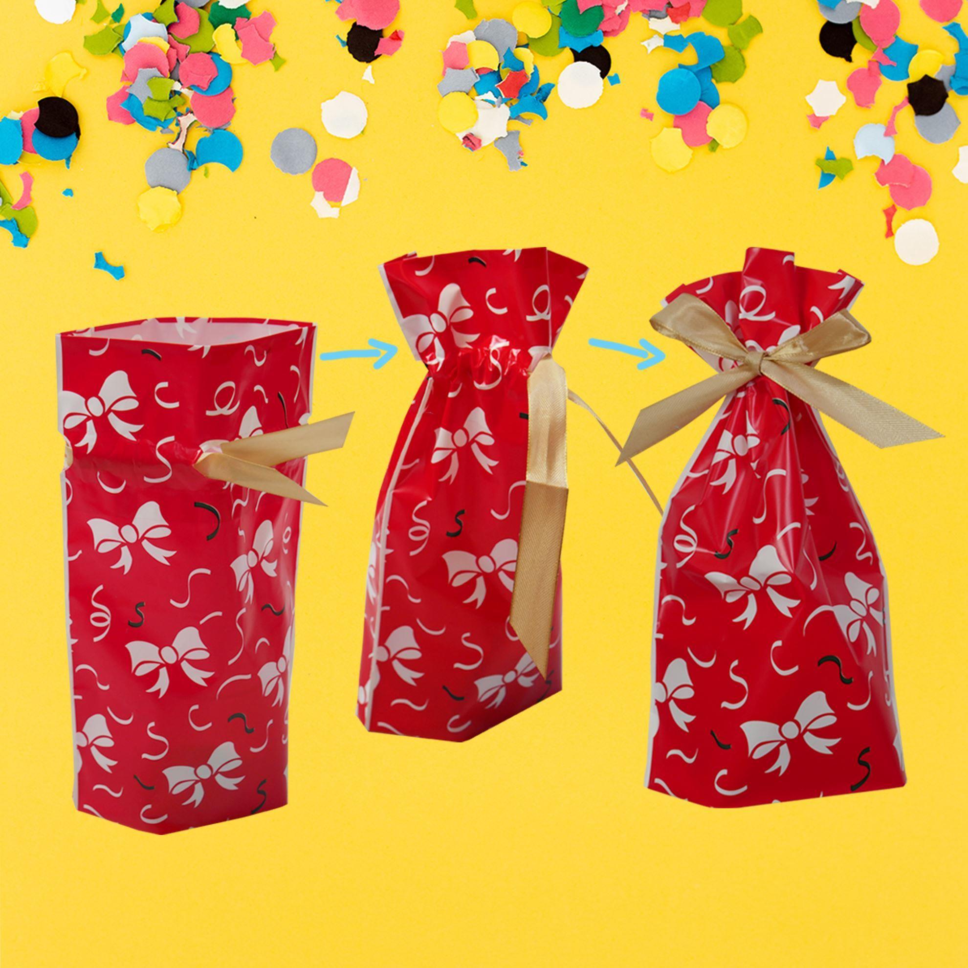 Benzile adezive sunt inamicul dumneavoastră de moarte când împachetați cadouri? Le puteți păcăli cu ajutorul acestor săculeti pentru cadouri. Sunt ajutorul ideal pentru toți cei care adoră să ofere cadouri, dar nu știu cum să le împacheteze frumos și ordonat. Acum economisiți nu doar nervii, ci și mult timp. Tot ce trebuie să faceți este să introduceți cadoul în săculeț, să trageți de fundă și să legați. Și gata!