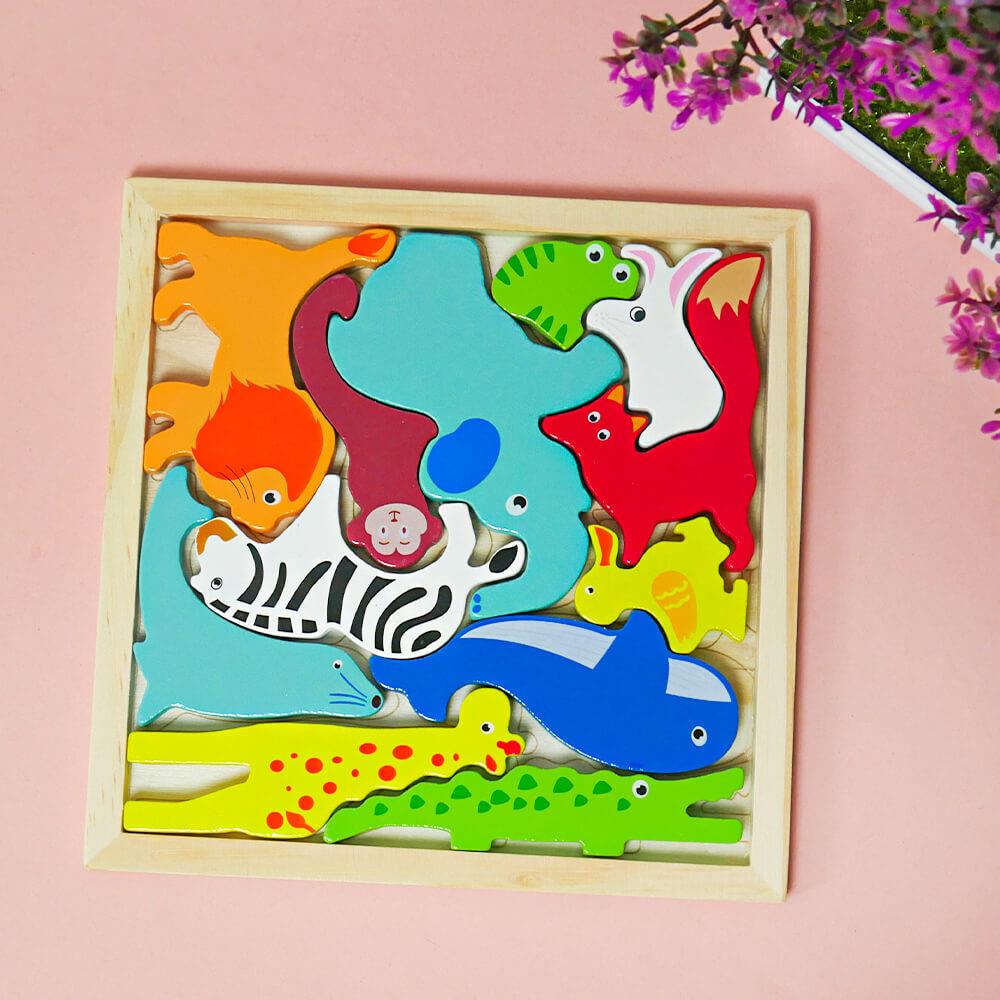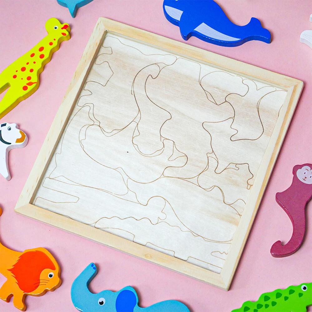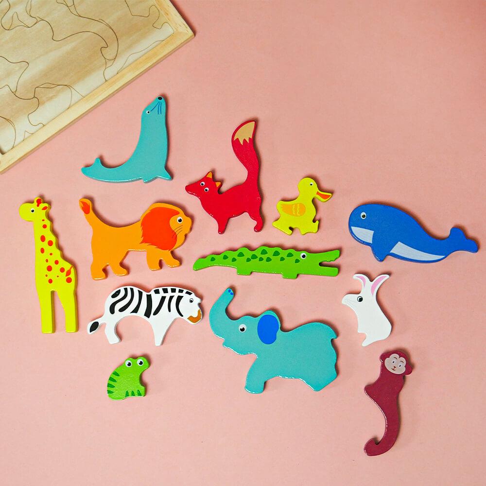 Învățare și joacă în același timp – acestea sunt puzzle-urile din lemn cu animăluțe, pe care le puteți scoate din cutia de lemn și lăsați copiii să încerce să le pună la loc în forma de pătrat sau să se joace cu fiecare piesă separat. Puzzle-urile din lemn susțin gândirea logică și imaginația copiilor dumneavoastră. Fiecare piesă este frumos colorată, astfel încât menține atenția celor mici.