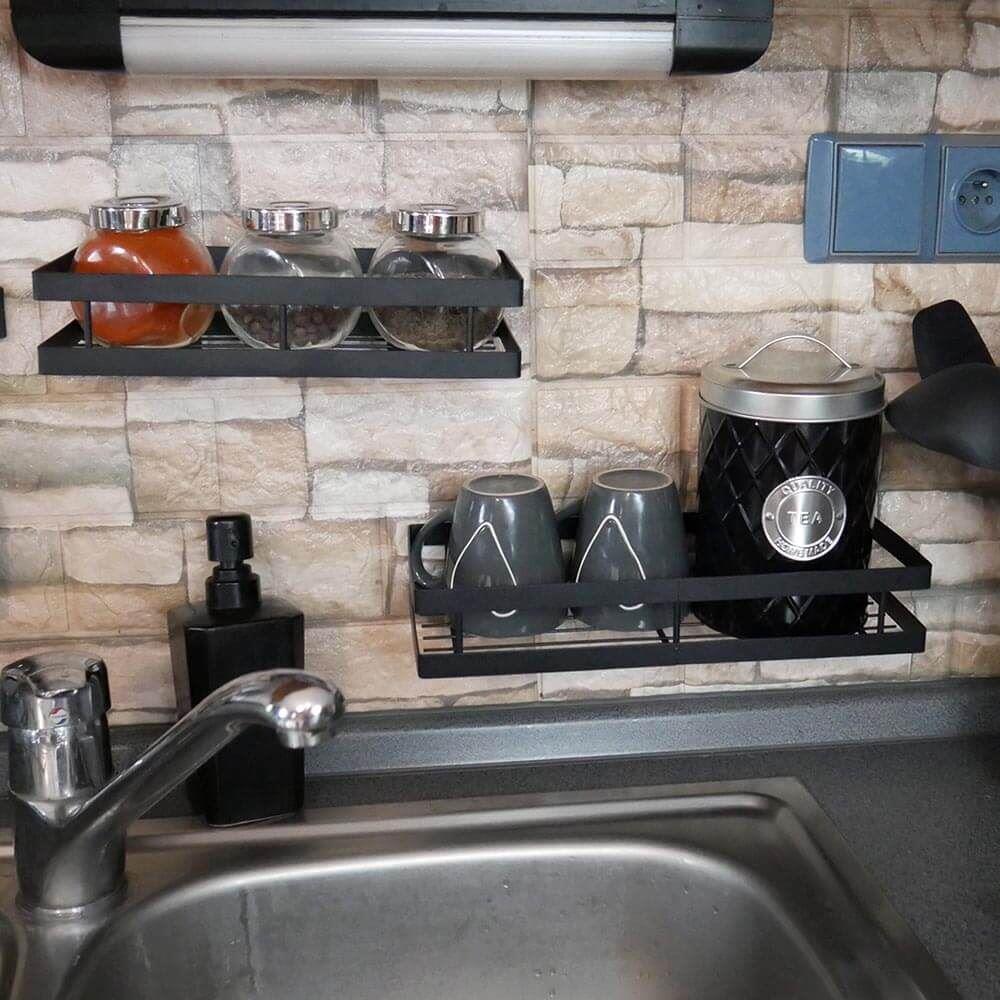 Încă vă lipsește spațiul suplimentar pentru depozitarea condimentelor, cosmeticelor sau a decorațiunilor? Etajera metalică neagră va rezolva toate problemele legate de lipsa spațiului. Este potrivită în special pentru bucătărie și baie, dar va fi utilă și în birou sau dormitor pentru diverse mărunțișuri. Etajera poate fi fixată în două moduri – prin găurire sau lipire. Tot ce aveți nevoie pentru instalare se află în pachet, astfel încât este doar la latitudinea dumneavoastră să decideți ce modalitate veți alege.