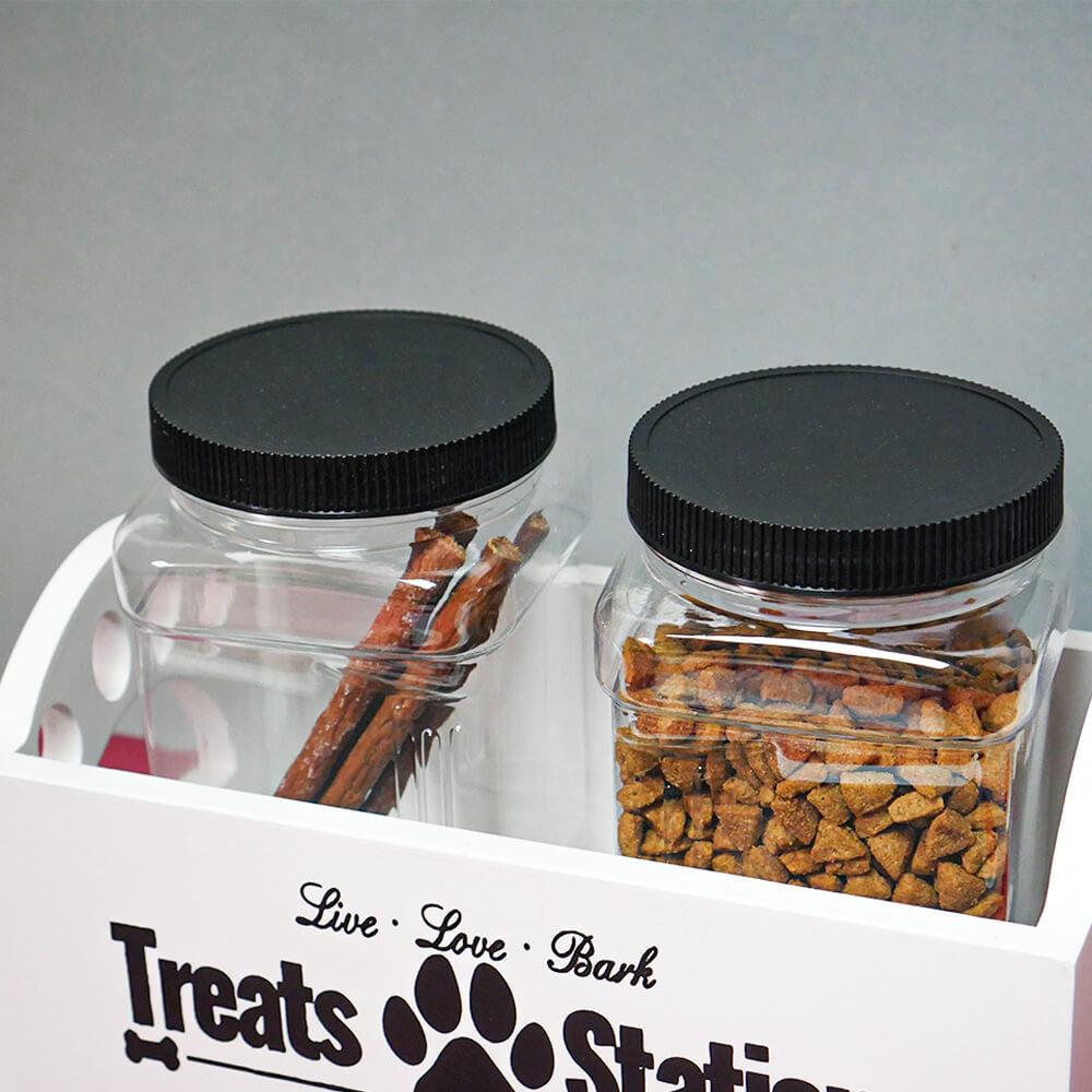 Păstrați bunătățile pentru animalul dvs. de companie cu soluție de stocare organizată. Acest distribuitor elegant cu două recipiente din plastic va aduce ordine și bucurie în casa dvs. de fiecare dată când deschideți capacul. Fără bunătăți împrăștiate prin sertare sau bucăți întărite uitate în geantă. Datorită recipientelor transparente, vedeți imediat ce aveți și când trebuie să adăugați provizii noi de delicii preferate.