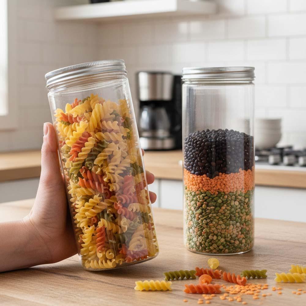 Depozitare clară și estetică pentru alimente uscate sau dulciuri