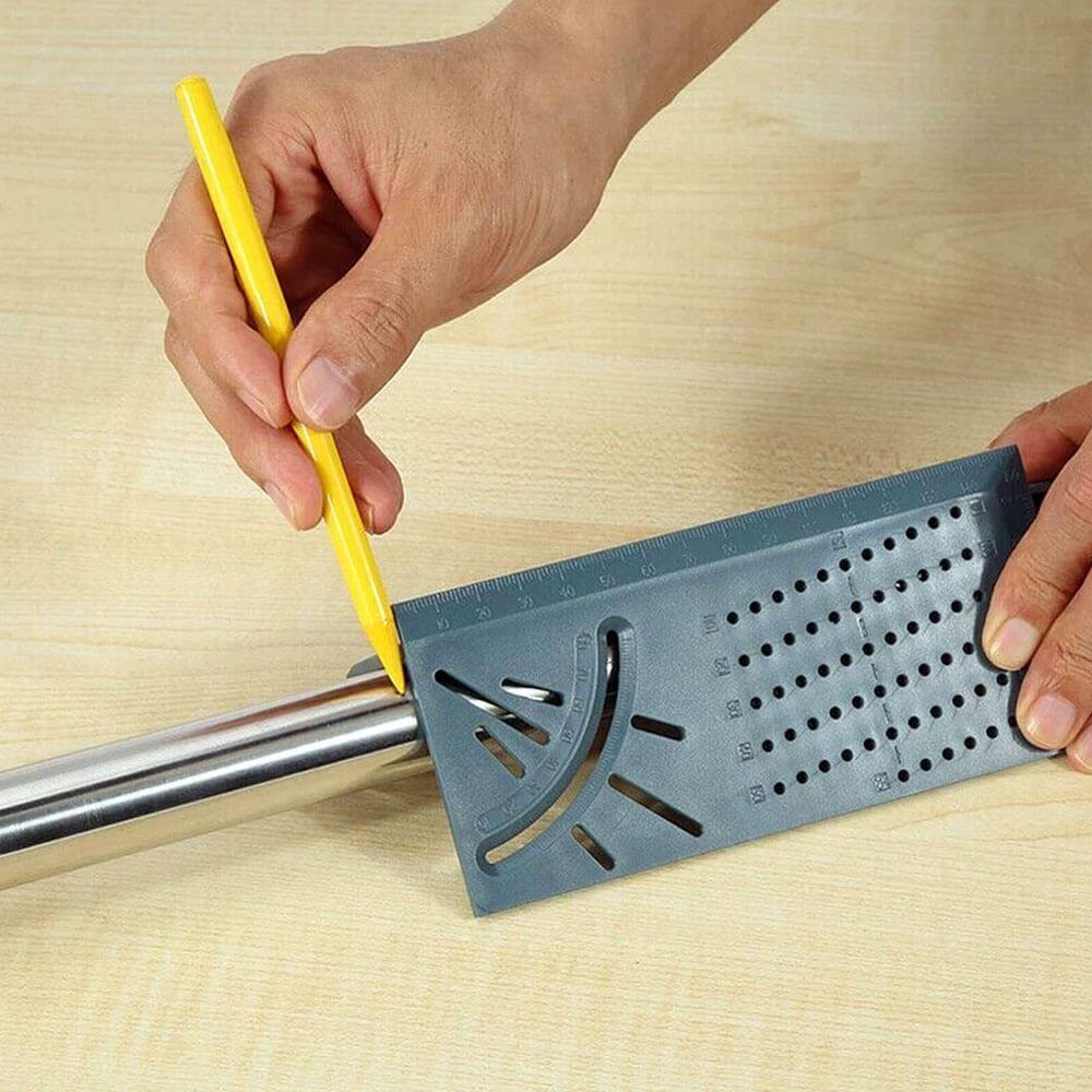 Cu rigla noastră de tâmplărie îți vei îmbunătăți abilitățile de prelucrare a lemnului! Un instrument care nu trebuie să lipsească niciunui tâmplar. Rigla are inscripționate cifre și o scală, ceea ce permite citirea și măsurarea ușoară. Este ideală pentru trasarea marcajelor pe lemn, țevi și altele. Are opritoare precise la 45° și 90° pentru colțuri și muchii, stabilește diametrul burghiului și poate fi folosită și ca marker pentru linii paralele.