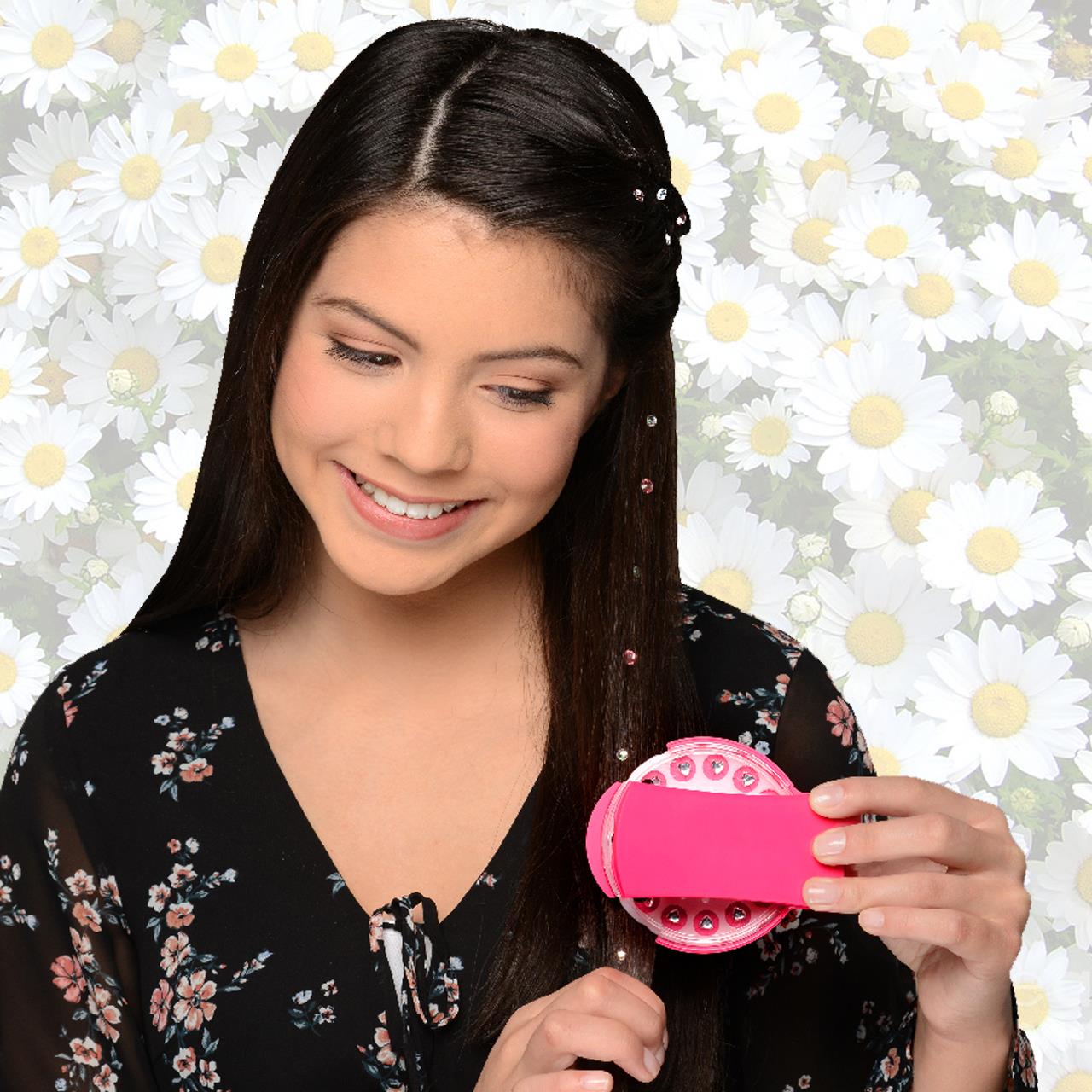 O decorațiune delicată, dar în același timp modernă, pentru părul dumneavoastră vă vor asigura acești pietricele strălucitoare. Aparatul practic pentru pietricele facilitează o aplicare ușoară. Tot ce trebuie să faceți este să introduceți șablonul cu pietricele în aplicator, apoi să îl poziționați și să apăsați.