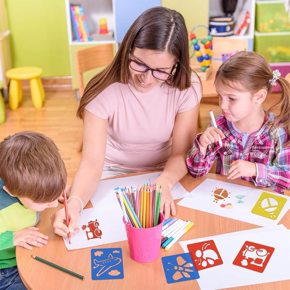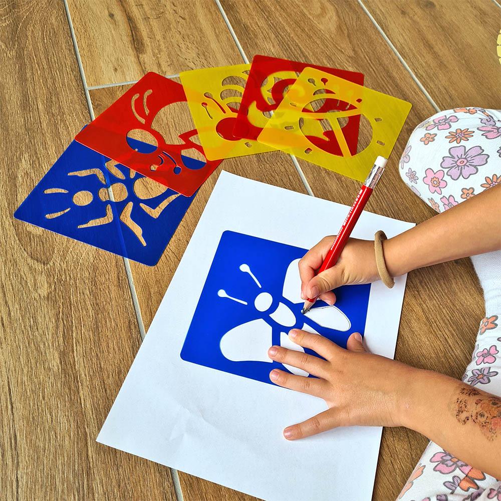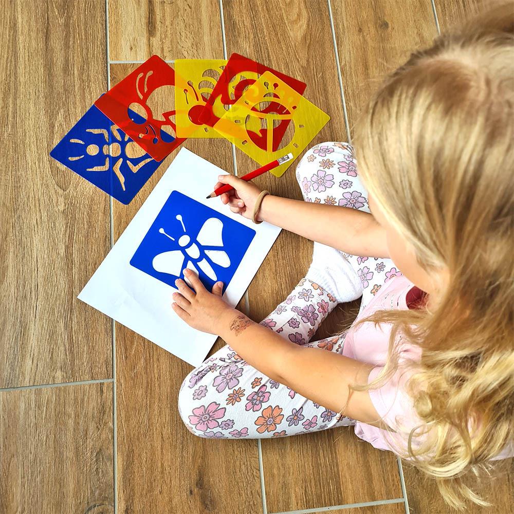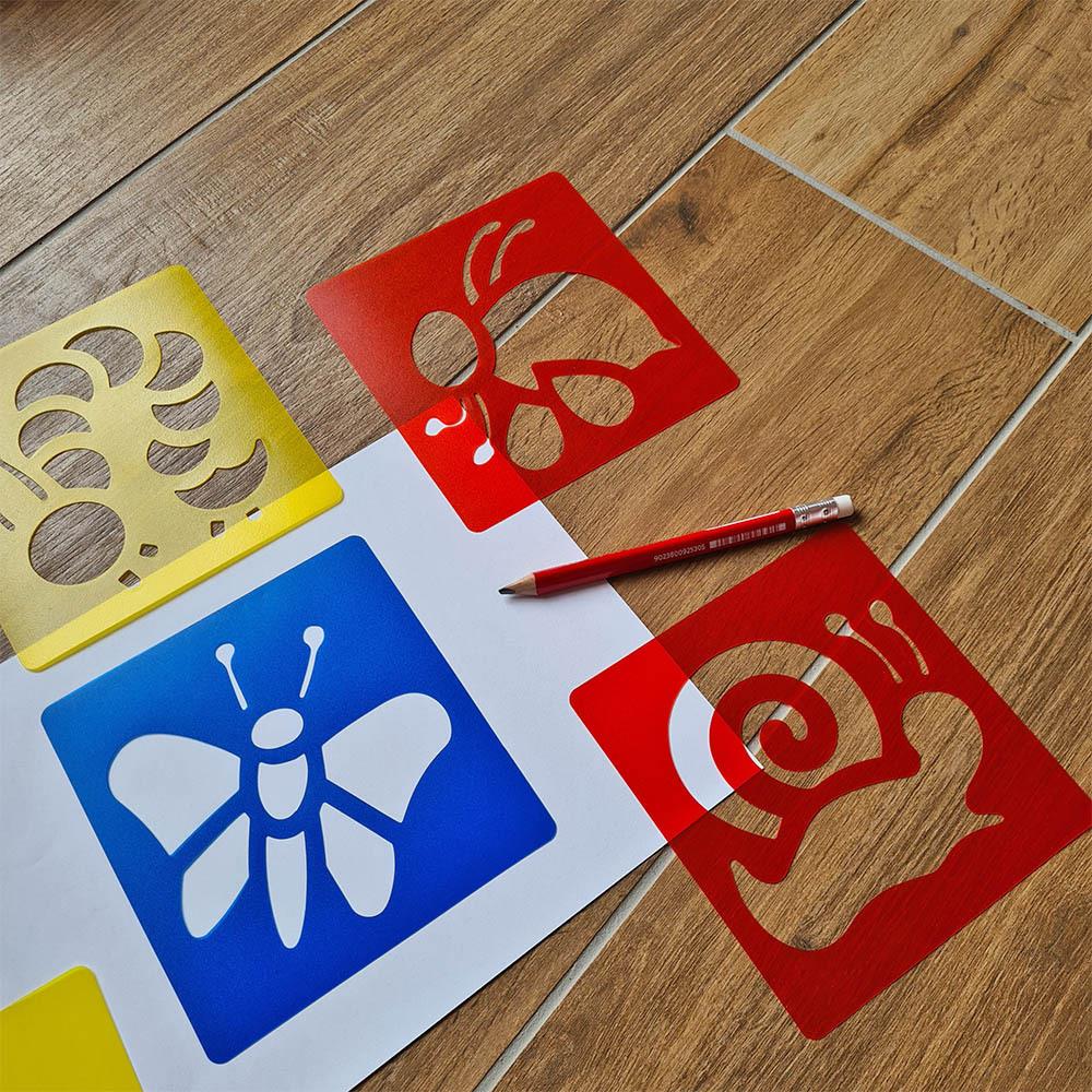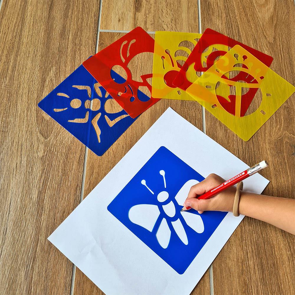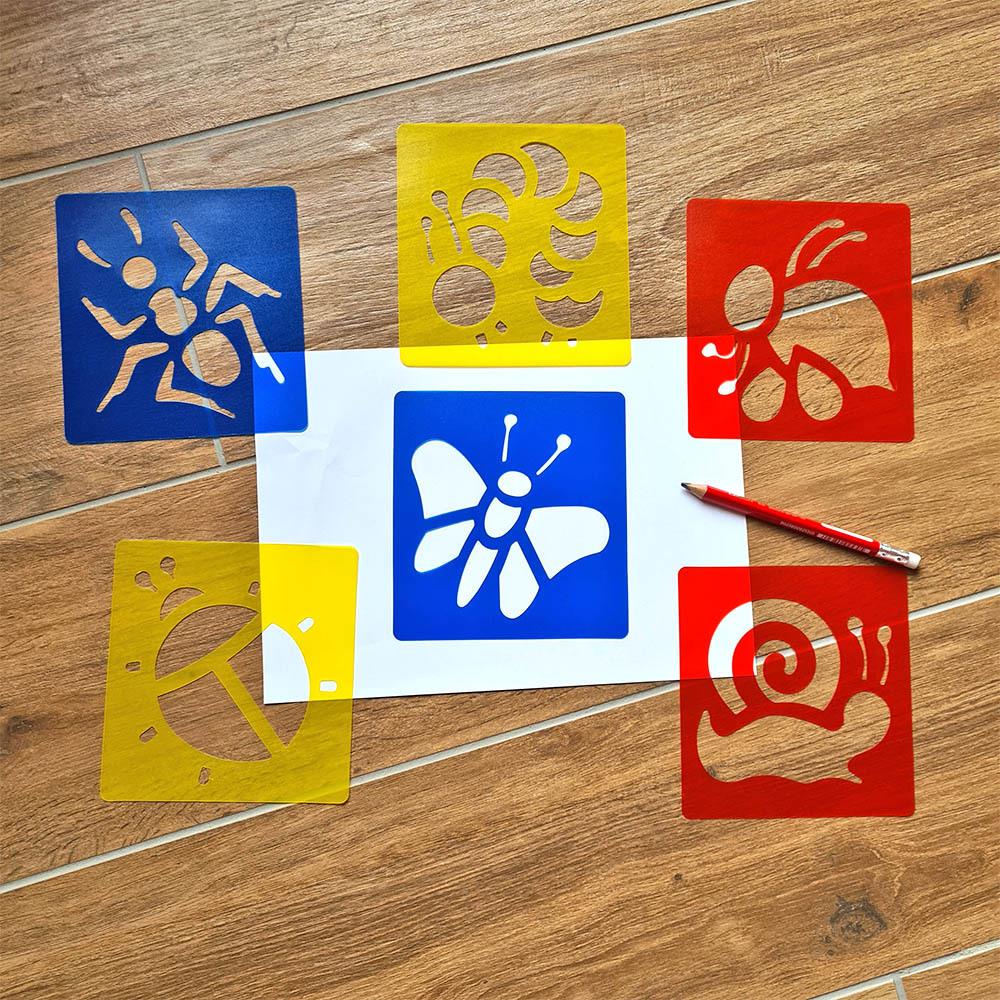 Datorită materialului rezistent, șabloanele pot fi utilizate în mod repetat și sunt ideale atât pentru creații acasă, cât și în grădinițe sau ateliere de artă. O modalitate excelentă de a sprijini imaginația și motricitatea copiilor! Pentru următoarea creație, trebuie doar să le spălați cu apă.