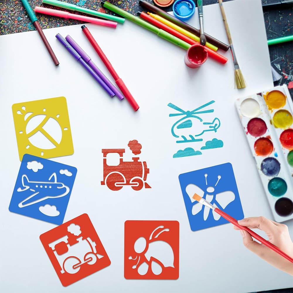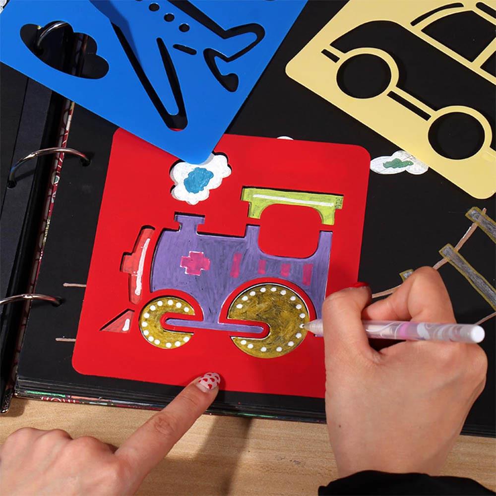 Descoperiți lumea creației cu acest set de 6 șabloane colorate pentru pictură! Copiii vor desena ușor și distractiv vehicule sau animale - diverse modele disponibile. Este suficient să așezați șablonul pe hârtie, să conturați forma și să colorați – și un desen original ia naștere.