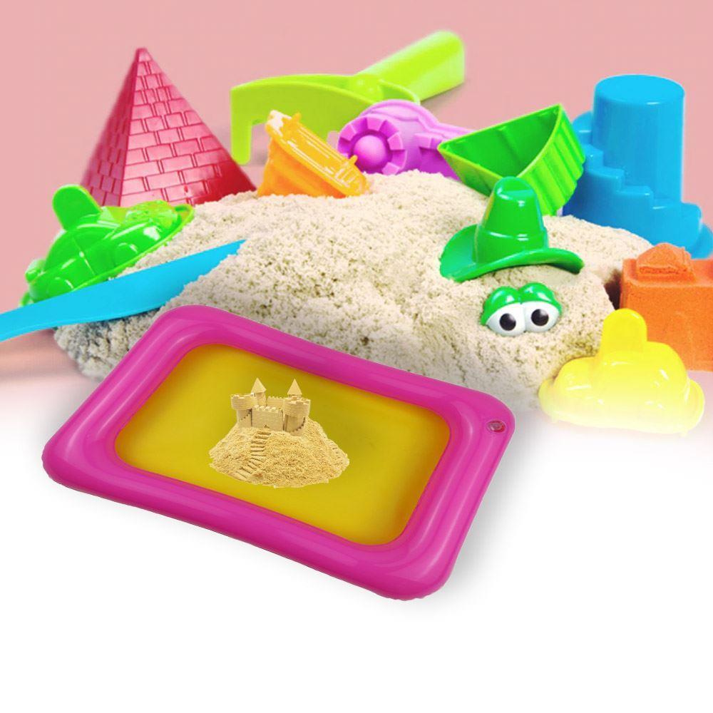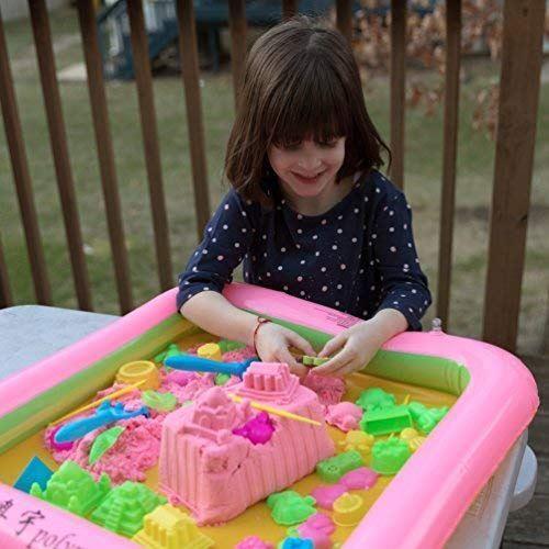 Aveți deja nisipul modelabil acasă? Șabloanele, de asemenea? Singurul lucru care vă lipsește este un spațiu unde copiii să se joace cu nisipul. Salteaua gonflabilă este creată exact pentru acest scop. Este suficient de mare, iar nisipul rămâne strâns la un loc, în interior, și nu peste tot prin cameră.