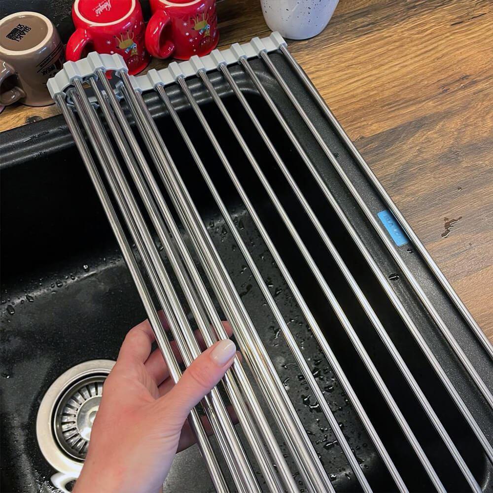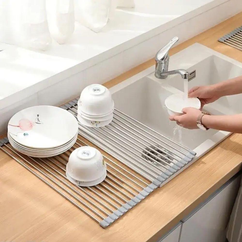 Un accesoriu perfect și practic pentru bucătărie. Suport de scurgere pliabil nu doar pentru vase.