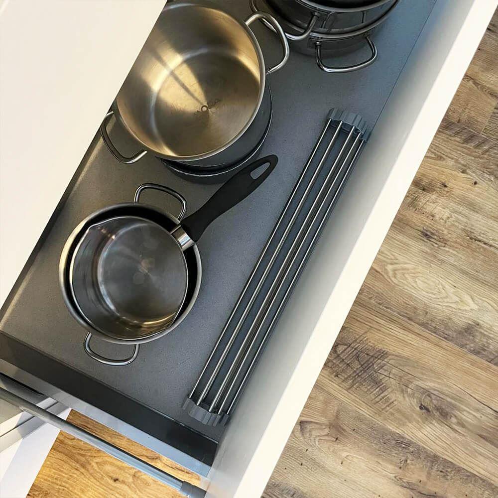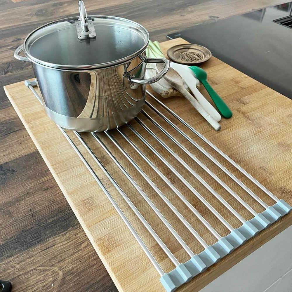 Uscătorul pliabil poate fi folosit în bucătărie ca uscător pentru vase, legume sau fructe. De asemenea, poate fi utilizat ca suport pentru oală sau tigăi fierbinți. Dacă aveți mai puțin spațiu în bucătărie, îl veți aprecia și mai mult! Este excelent pentru economisirea spațiului.