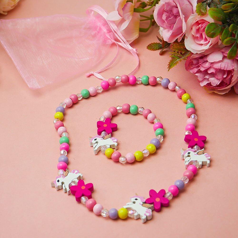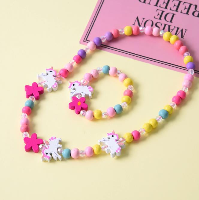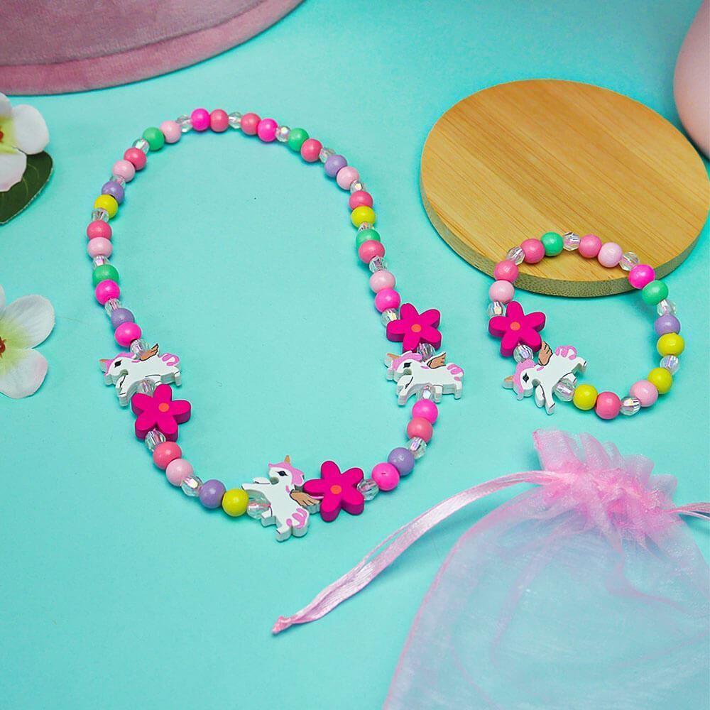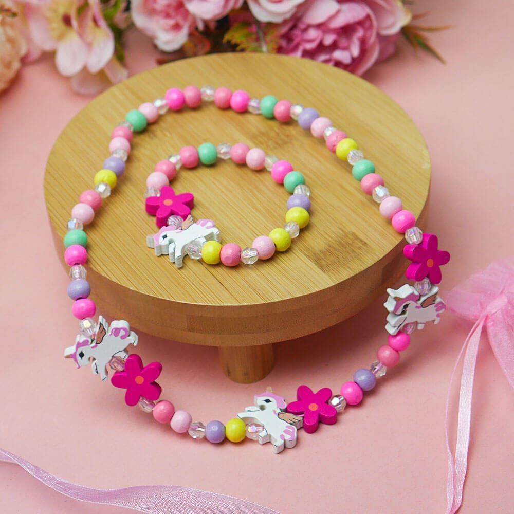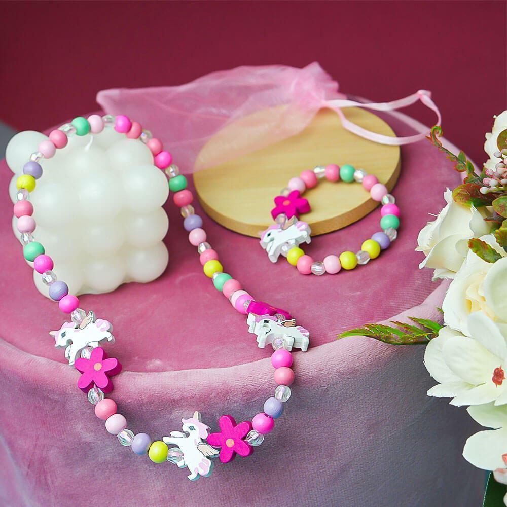 Setul de colier și brățară din mărgele colorate din lemn este un cadou minunat pentru micile cochete. Mărgelele din lemn în diverse culori oferă acestor bijuterii un aspect unic și jucăuș, care va însufleți orice ținută. Mărgelele sunt naturale și blânde cu pielea, ceea ce le face accesoriul ideal pentru purtare zilnică.