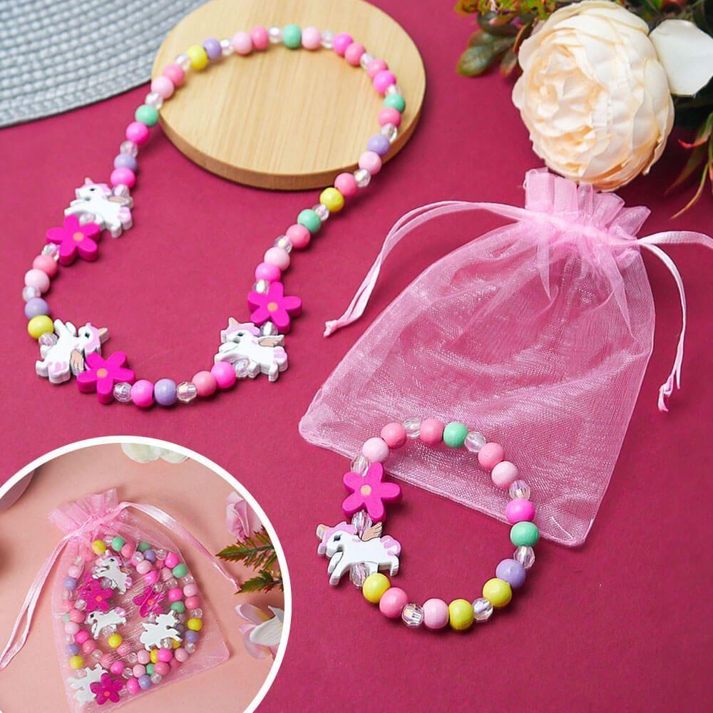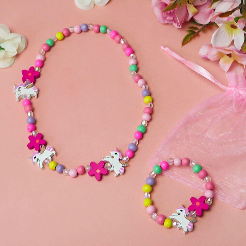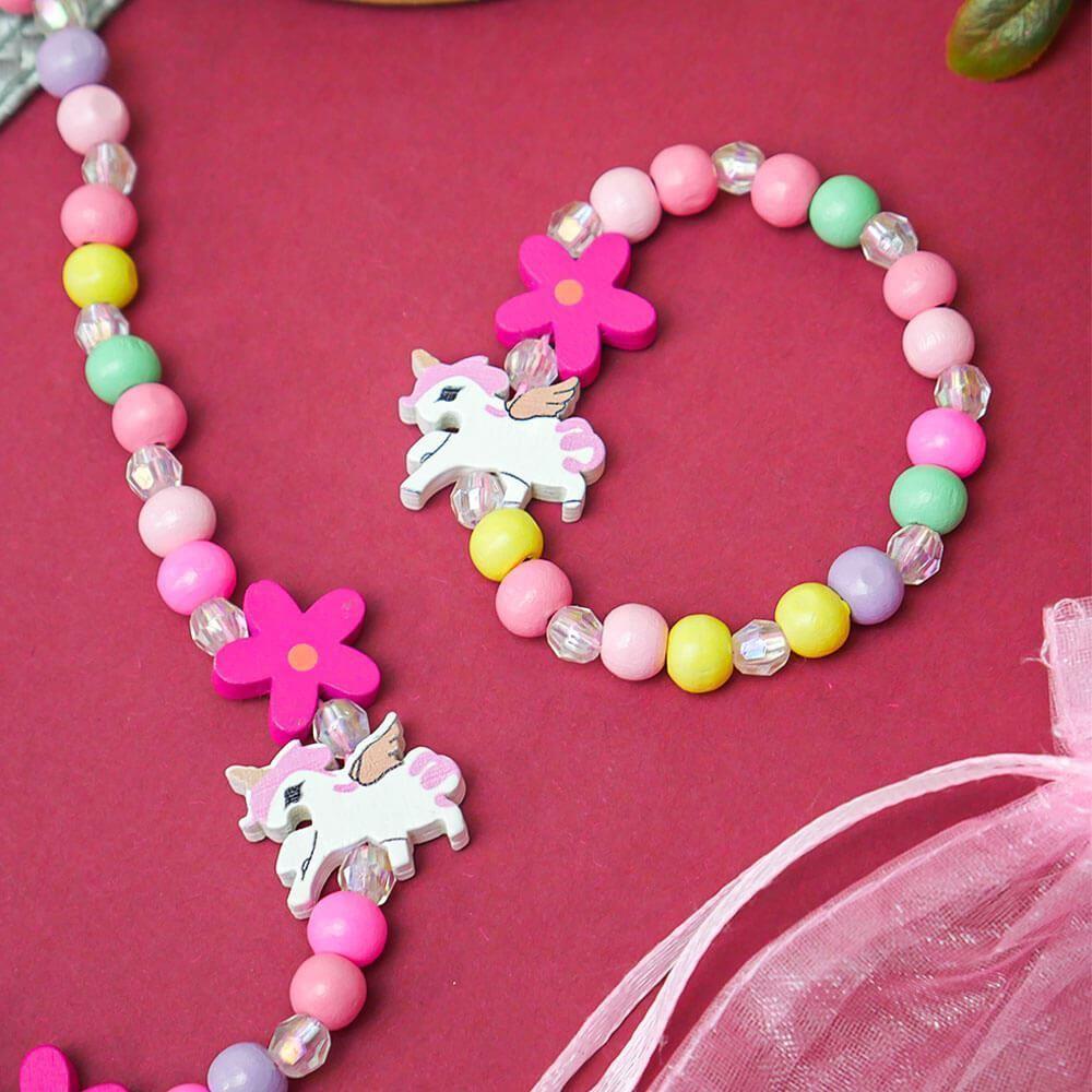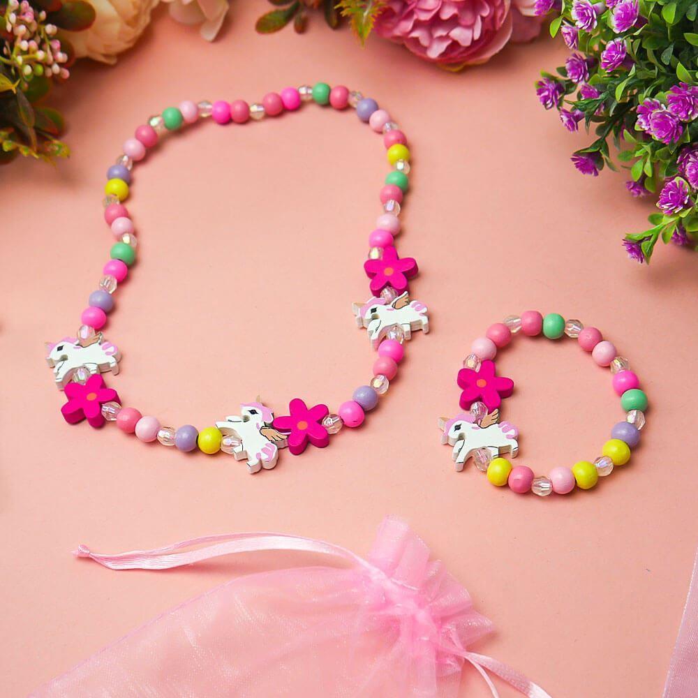 Setul de colier și brățară din mărgele colorate din lemn este un cadou minunat pentru micile cochete. Mărgelele din lemn în diverse culori oferă acestor bijuterii un aspect unic și jucăuș, care va însufleți orice ținută. Mărgelele sunt naturale și blânde cu pielea, ceea ce le face accesoriul ideal pentru purtare zilnică.
