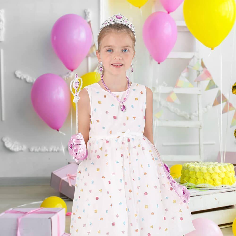Pentru a deveni o adevărată prințesă, ai nevoie de acest set regal, care conține toate accesoriile esențiale ale unei prințese. Setul include bijuterii precum un inel, cercei și un colier. De asemenea, vei găsi în set o pereche de mănuși plăcute la atingere. Și cel mai important? O baghetă magică și o coroniță de prințesă superbă. Întregul set este frumos asortat în culoarea albastră. Bijuteriile sunt decorate cu pietre prețioase din plastic, care vor arăta pentru copii ca fiind adevărate. Cu acest set, fetițele dumneavoastră se vor transforma în prințese sau zâne fermecate.