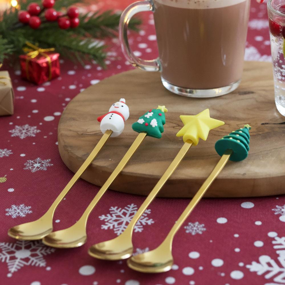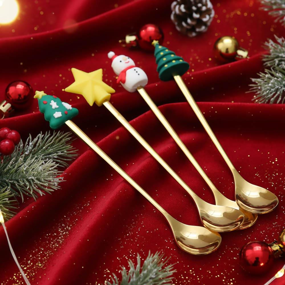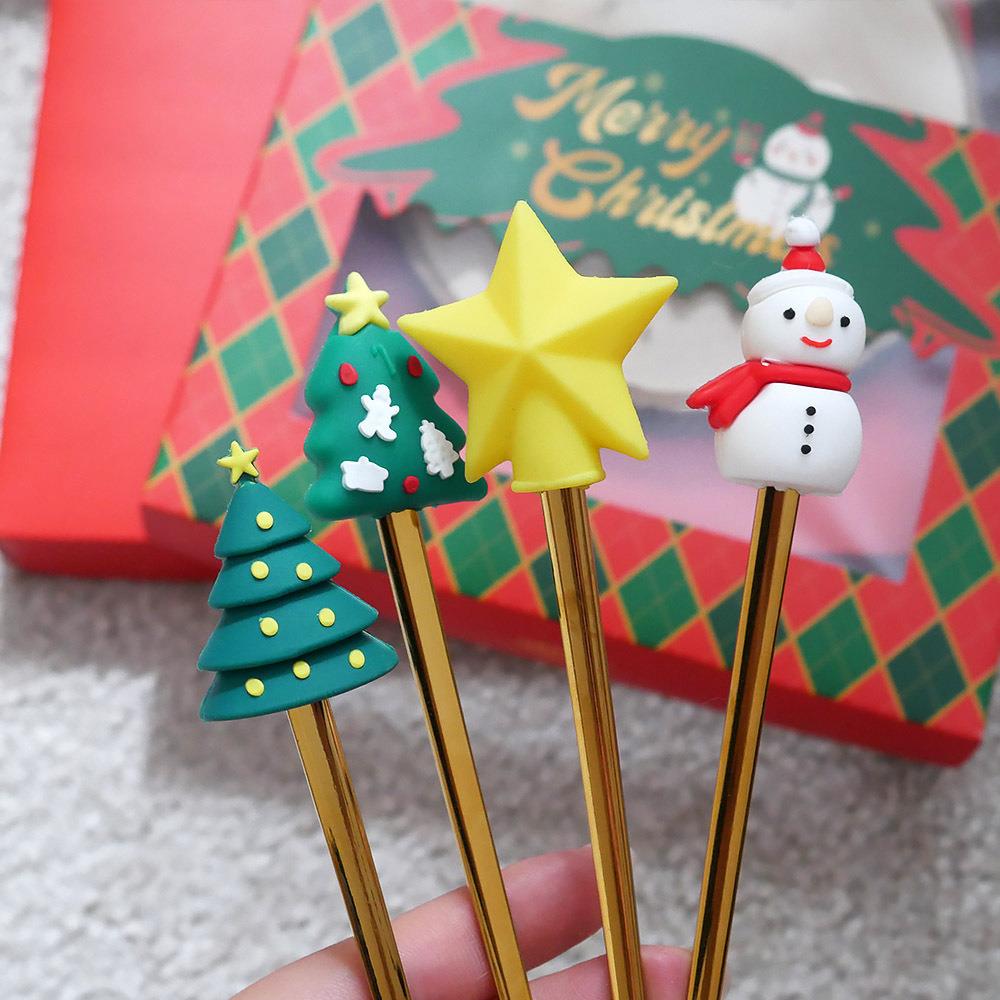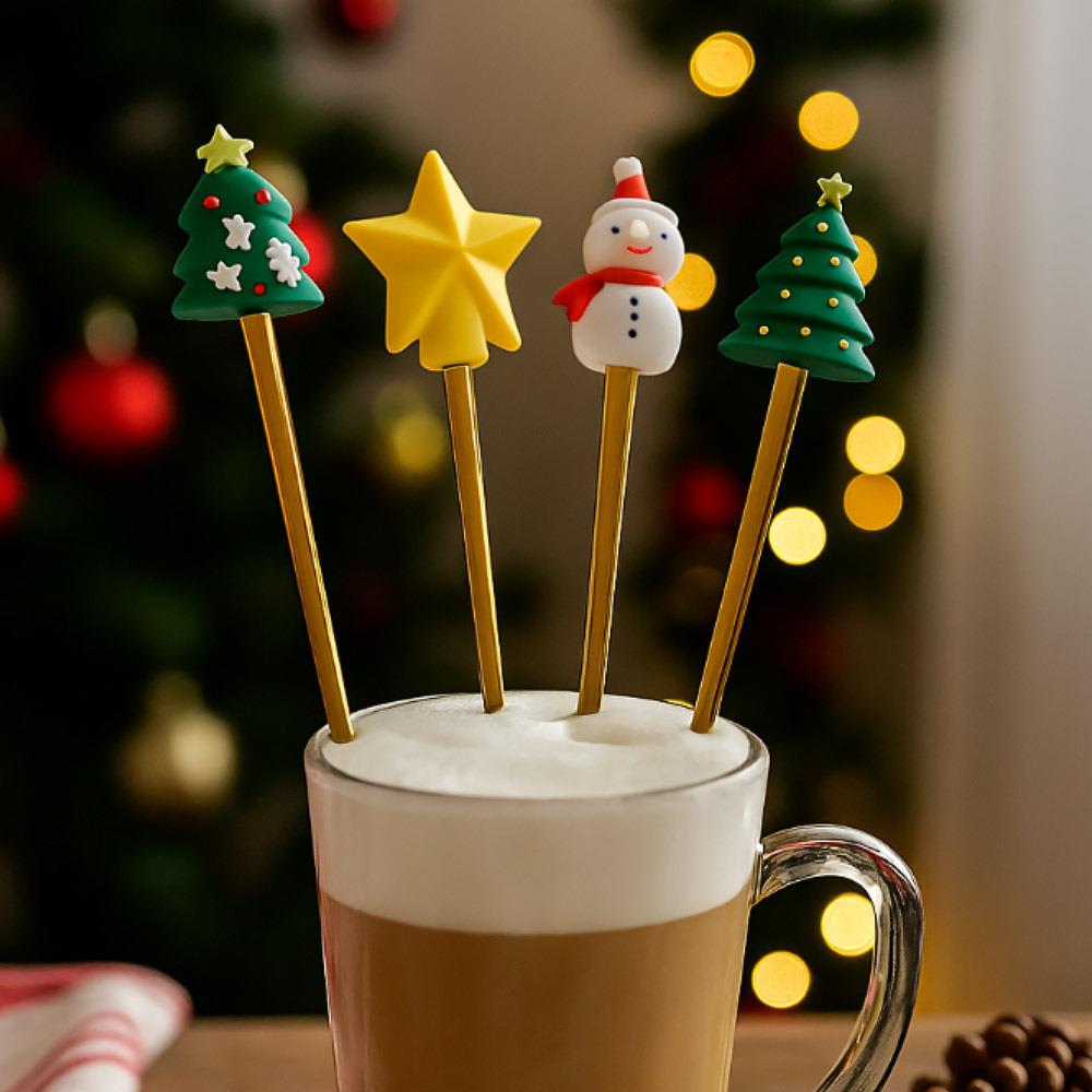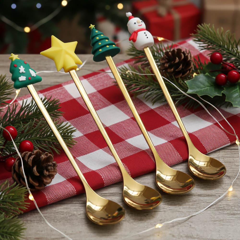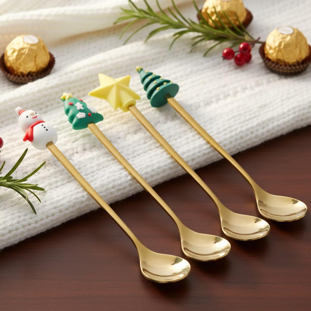 • 4× linguriță de aur cu decor de Crăciun (1× stea, 1× om de zăpadă, 2× brăduț)