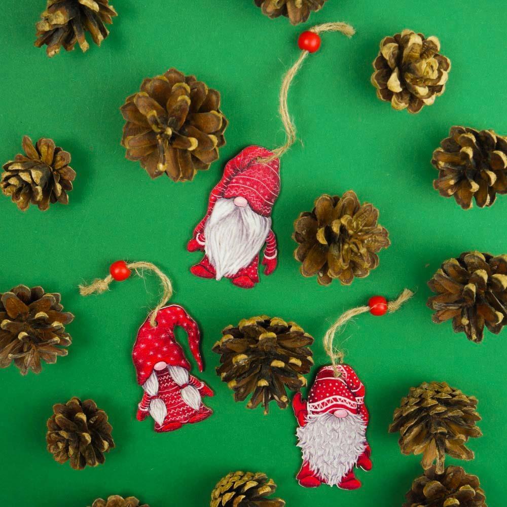 Cui nu-i place să împodobească bradul și să împodobească casa de Crăciun. Acest set conține 9 ornamente frumoase cu design din lemn cu imagini pictate fermecătoare ale gnomilor. Se potrivesc frumos la o anumită culoare, astfel încât decorul din interior pare unificat.